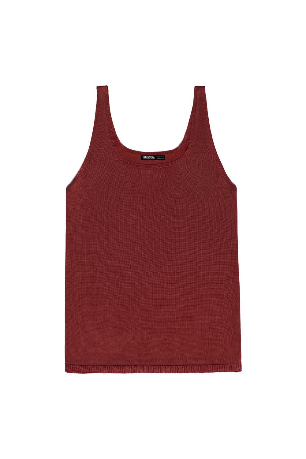 Knitted seamless 100% viscose top with thin straps.