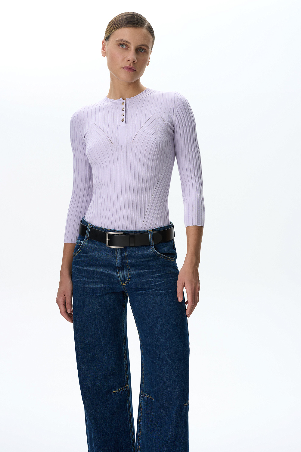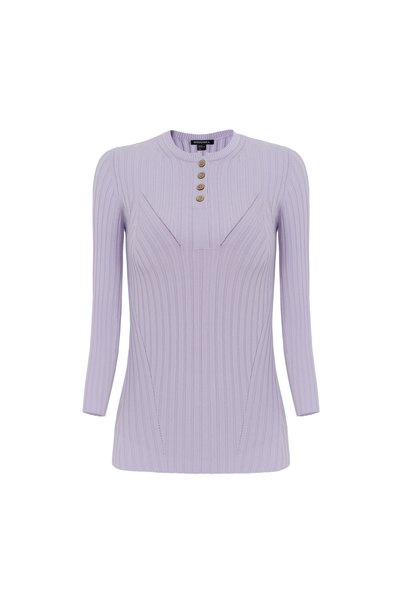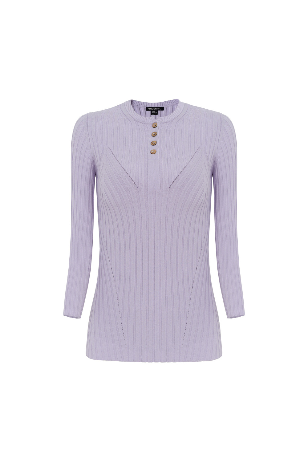 Ribbed jumper in soft viscose with 3/4 sleeves and a V-neck with buttons.
