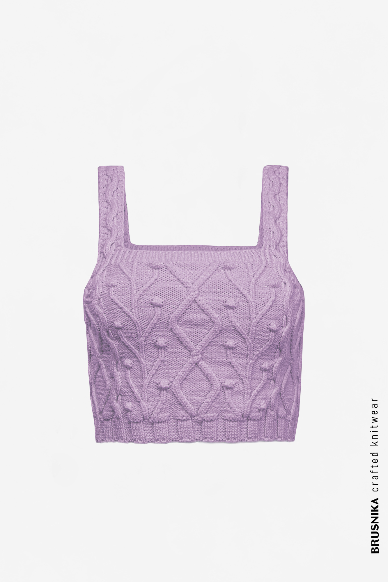 A textured cotton crop top with wide straps goes well with both trousers and skirts.