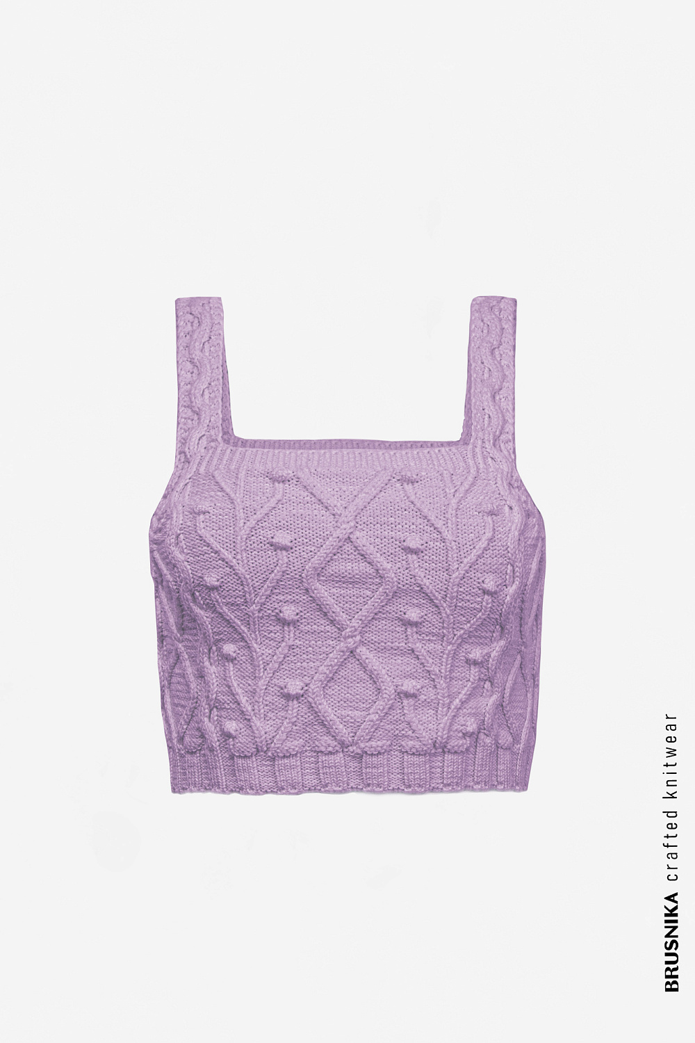 A textured cotton crop top with wide straps goes well with both trousers and skirts.