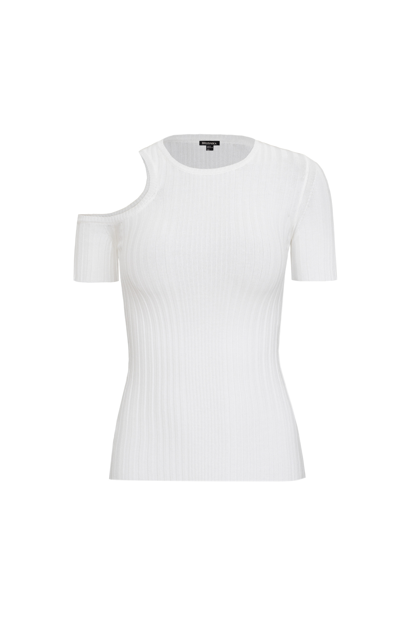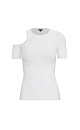 Viscose wide ribbed knit top with cut-out shoulder.