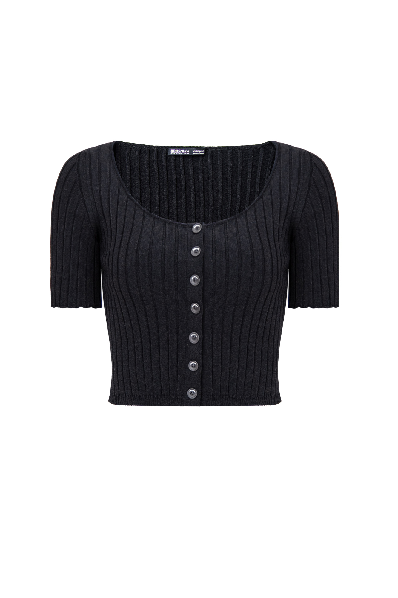 Ribbed viscose crop top with buttons, made of soft yarn with short sleeves.