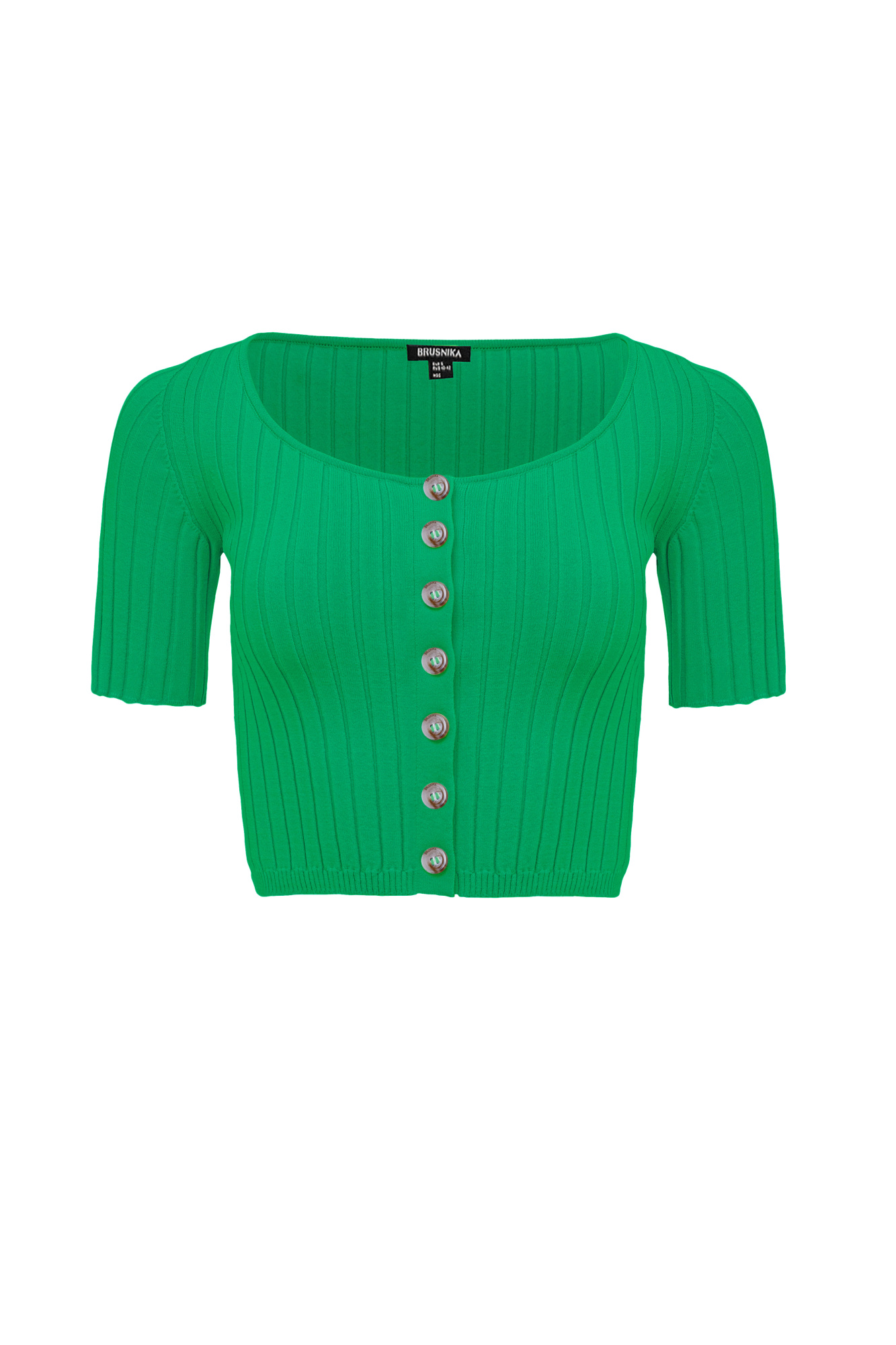 Ribbed viscose crop top with buttons, made of soft yarn with short sleeves.