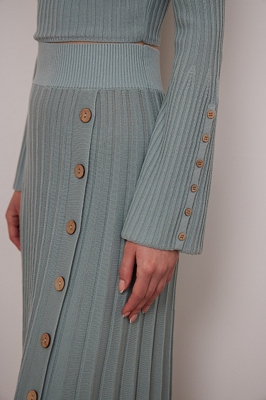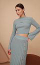 A short top made of wool with long sleeves of claws, on buttons. With it, you can create a romantic image even with everyday things. In such a top you can look spectacular not only at the evening output, but also in the workplace.