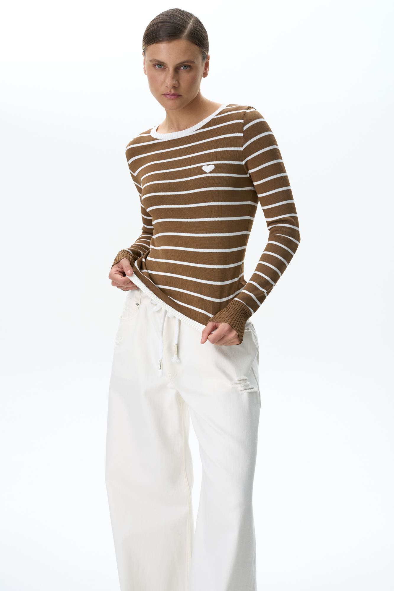 Long sleeve viscose jumper with heart on chest.