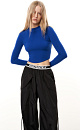 Knitted viscose top with long sleeves and a curved hem.