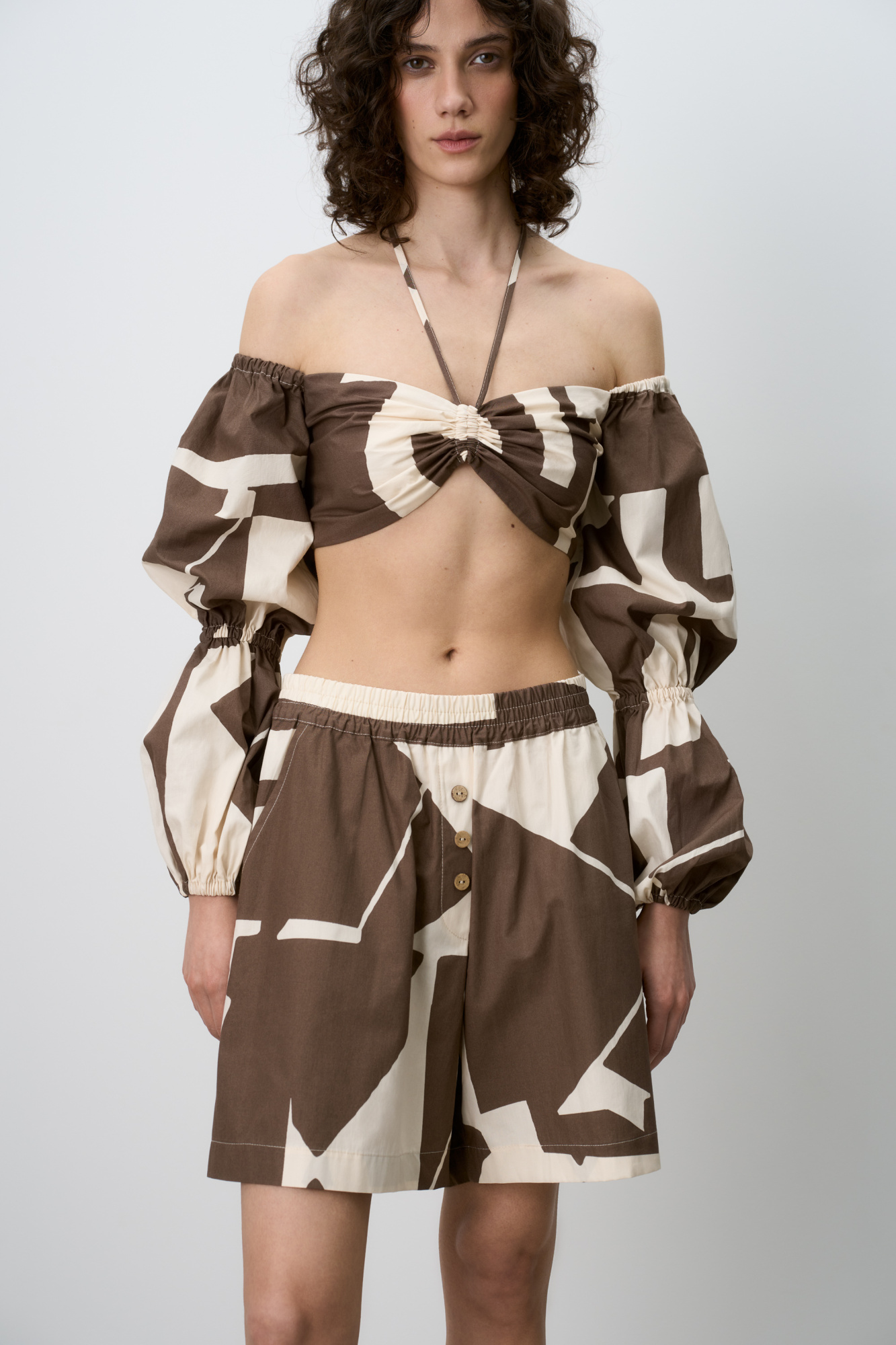 Viscose and linen blend loong sleeve top. Pairs perfectly with shorts in the same style.