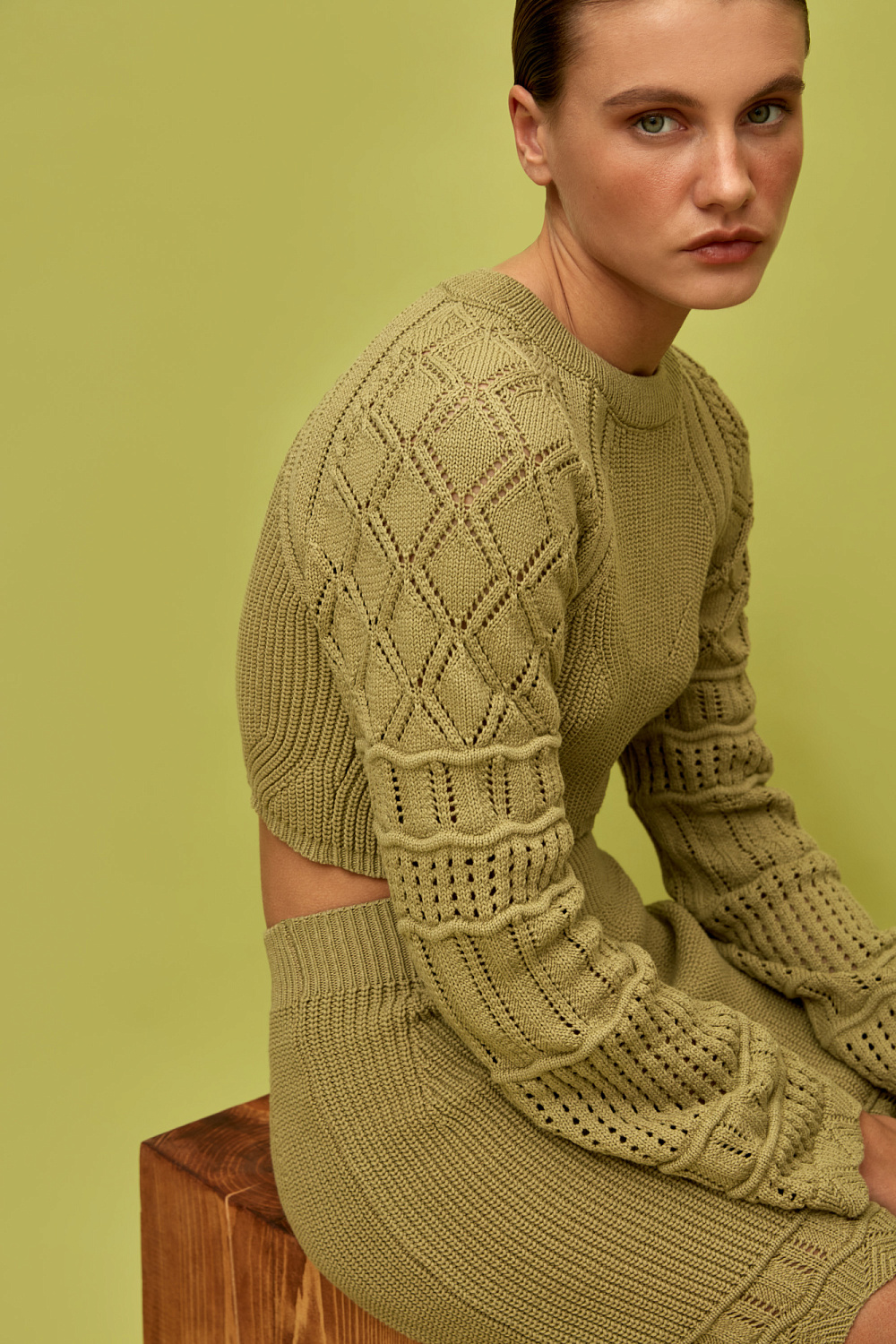 Textured cotton knit top with long sleeves.You can complete the look with a skirt in the same style.