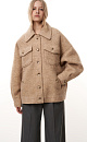 A loose-fitting wool jacket with buttons, which are also present in the form of fasteners on the pockets and sleeves. Four pockets: two chest and two patch pockets with lapels. Raglan sleeves at cuffs. The collar of the product is tailored.