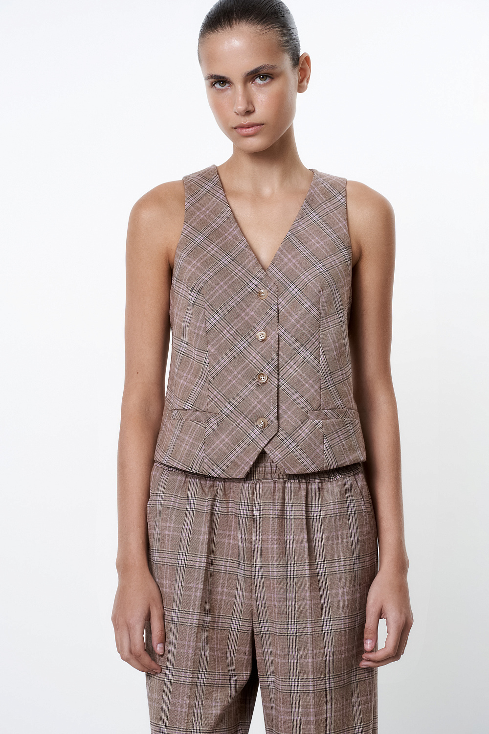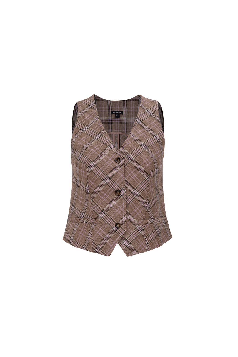 Classic straight-fit wool blend vest. Features V-neck and false welt pockets. Button closure. You can complete the look with a matching blazer and trousers.