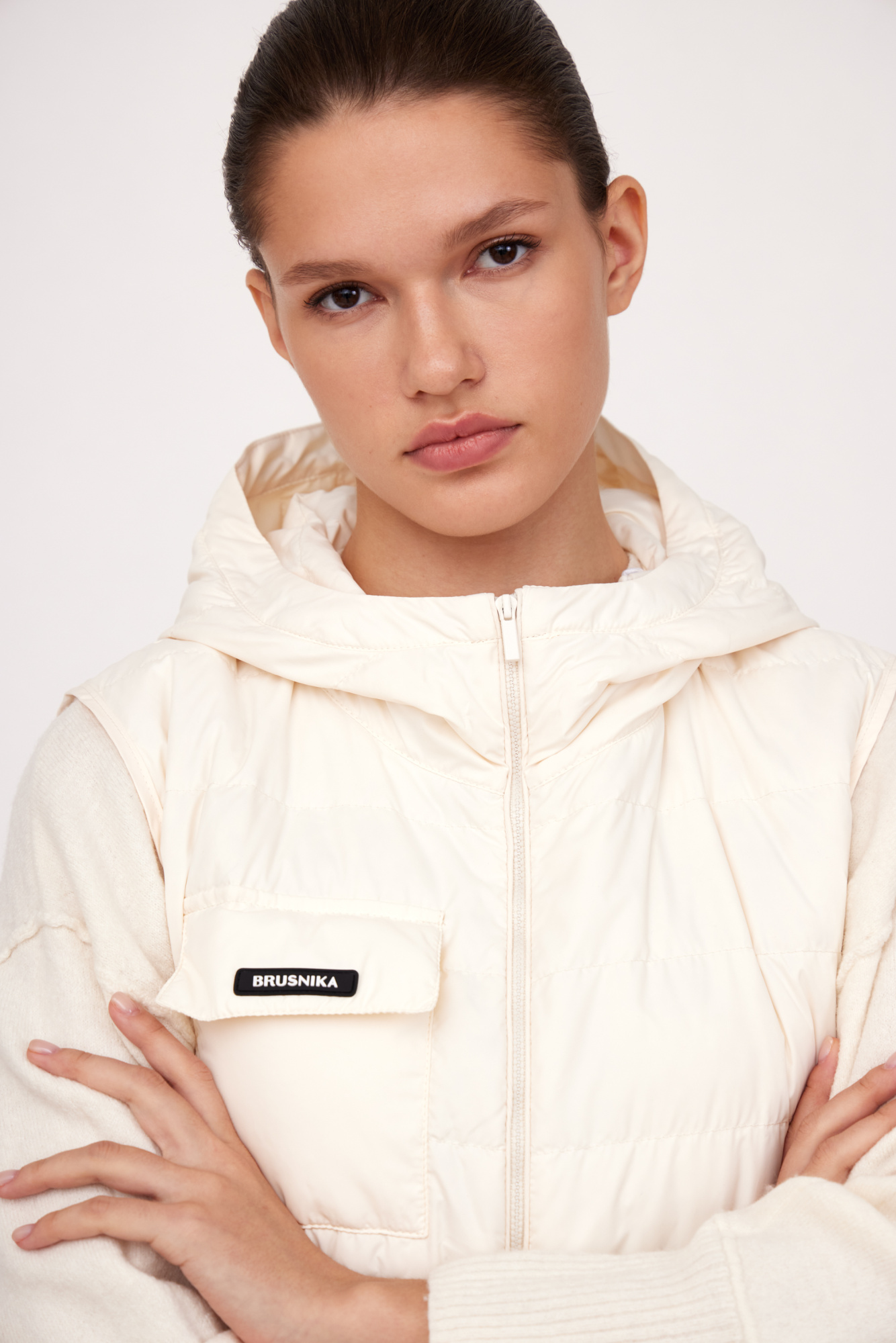 Super-thin and lightweight vest with a chest pocket and a hood. Storage bag included.