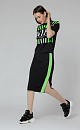 The skirt is a fitted midi skirt, with a decorative slit and a contrast stripe on the side.