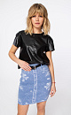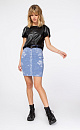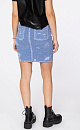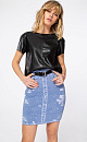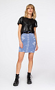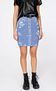 Viscose denim skirt. Length above knee. Elastic belt with loops. There are two pockets at the back.
