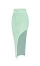Fitted ribbed knit skirt with a side slit and wide elastic waistband.