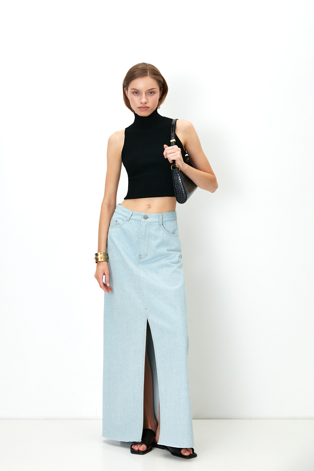 Denim skirt with slit