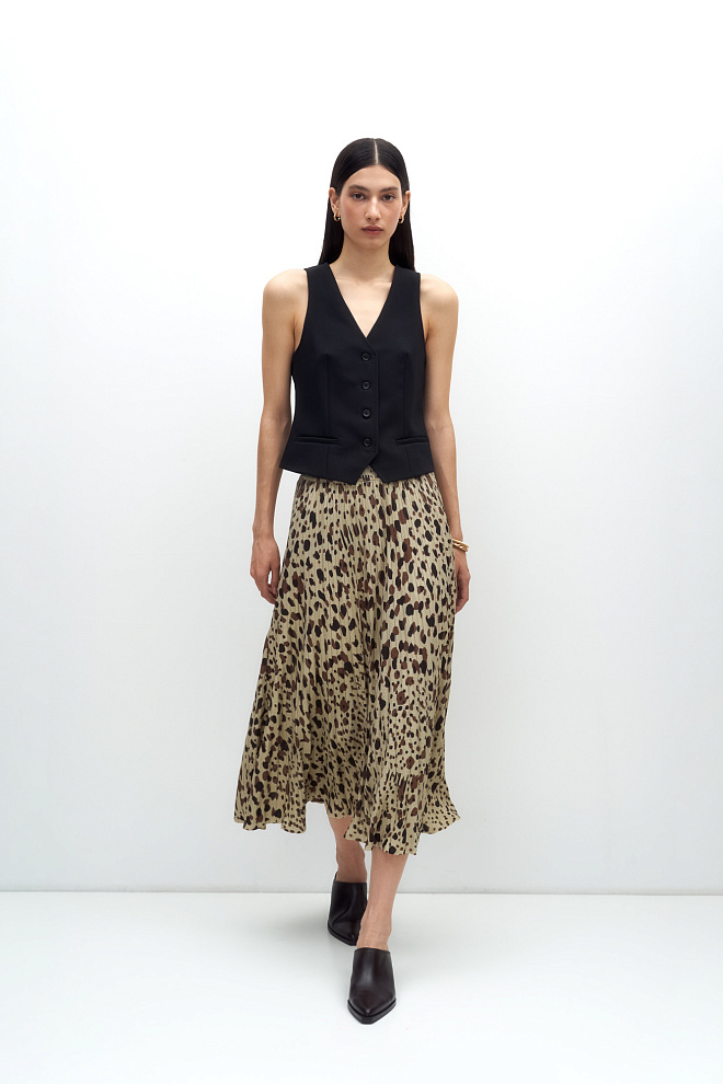 Leopard print pleated skirt