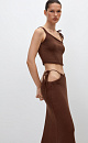 100% cotton midi skirt with an accent side cutout, drawstring and rolled hem. You can complete the look with a one-shoulder top.