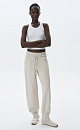 Knitted trousers made of viscose with the addition of elastane. The model is made in a sporty style, with a wide elastic waistband with a drawstring, side pockets and wide cuffs with elastic.