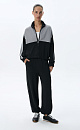 Knitted viscose jogging trousers. The model is made in a sporty style, with an elastic waistband with a drawstring, side pockets and elasticated cuffs. The product is decorated with wide stripes of contrasting color.