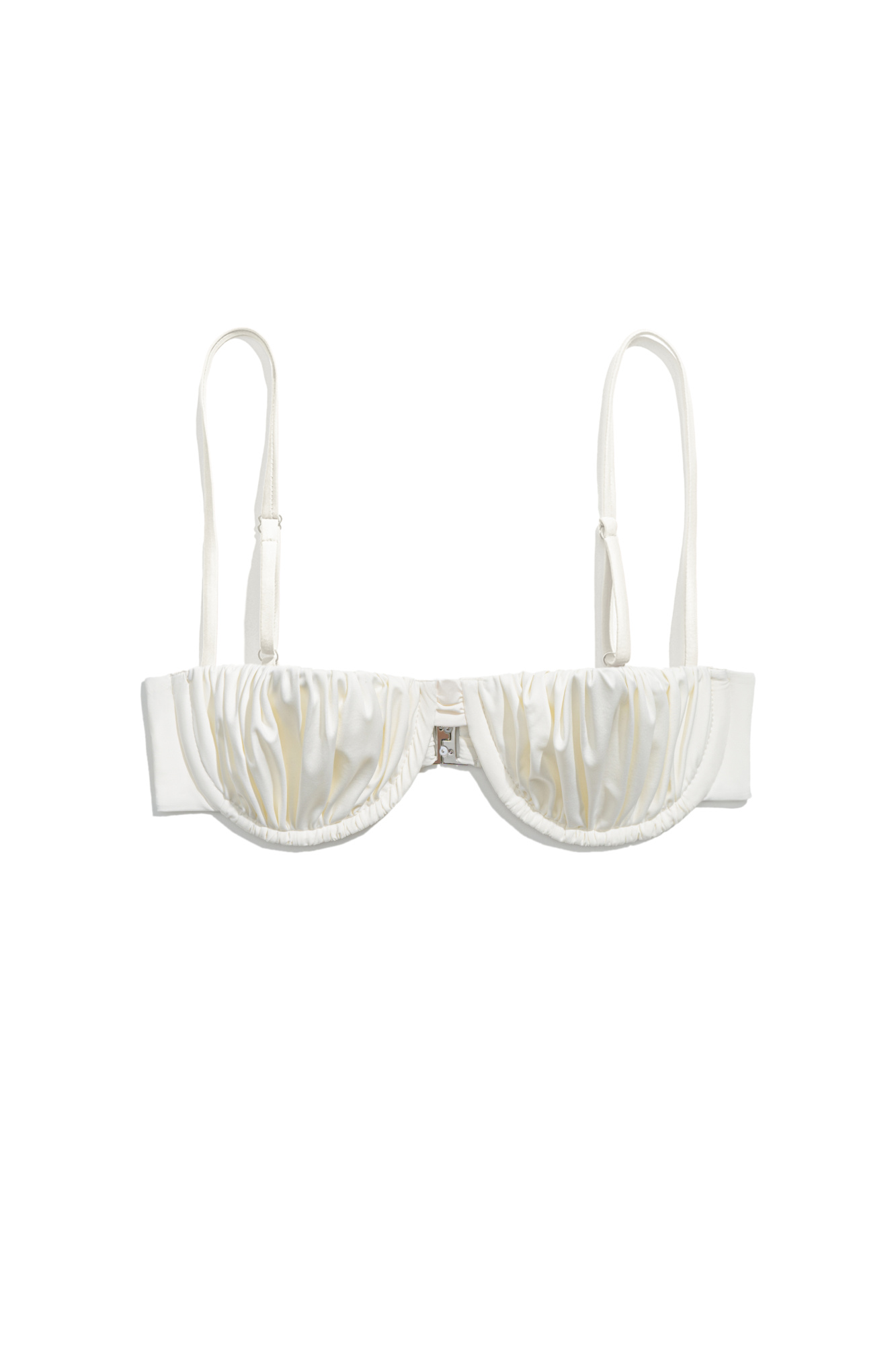 Swimsuit bodice with molded draped cups. Model with thin adjustable straps and a fastening at the back.