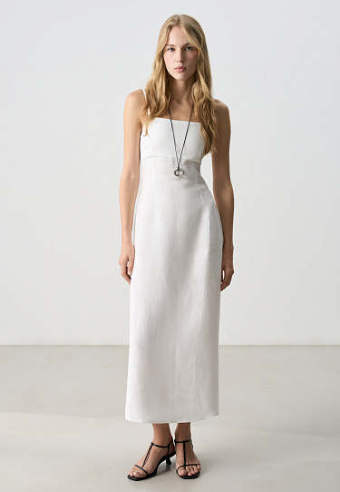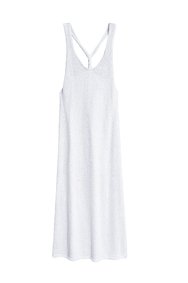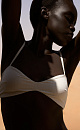 Sconce made of textured fabric. The model has thin adjustable straps and a fastening at the back.