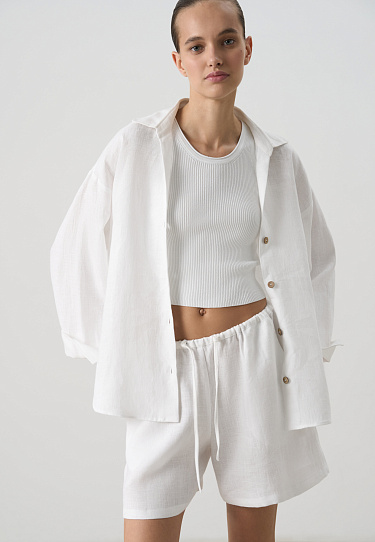 One-shoulder bodice in textured fabric.