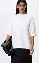 Loose knit cotton T-shirt with dropped shoulder line and ribbed edges