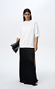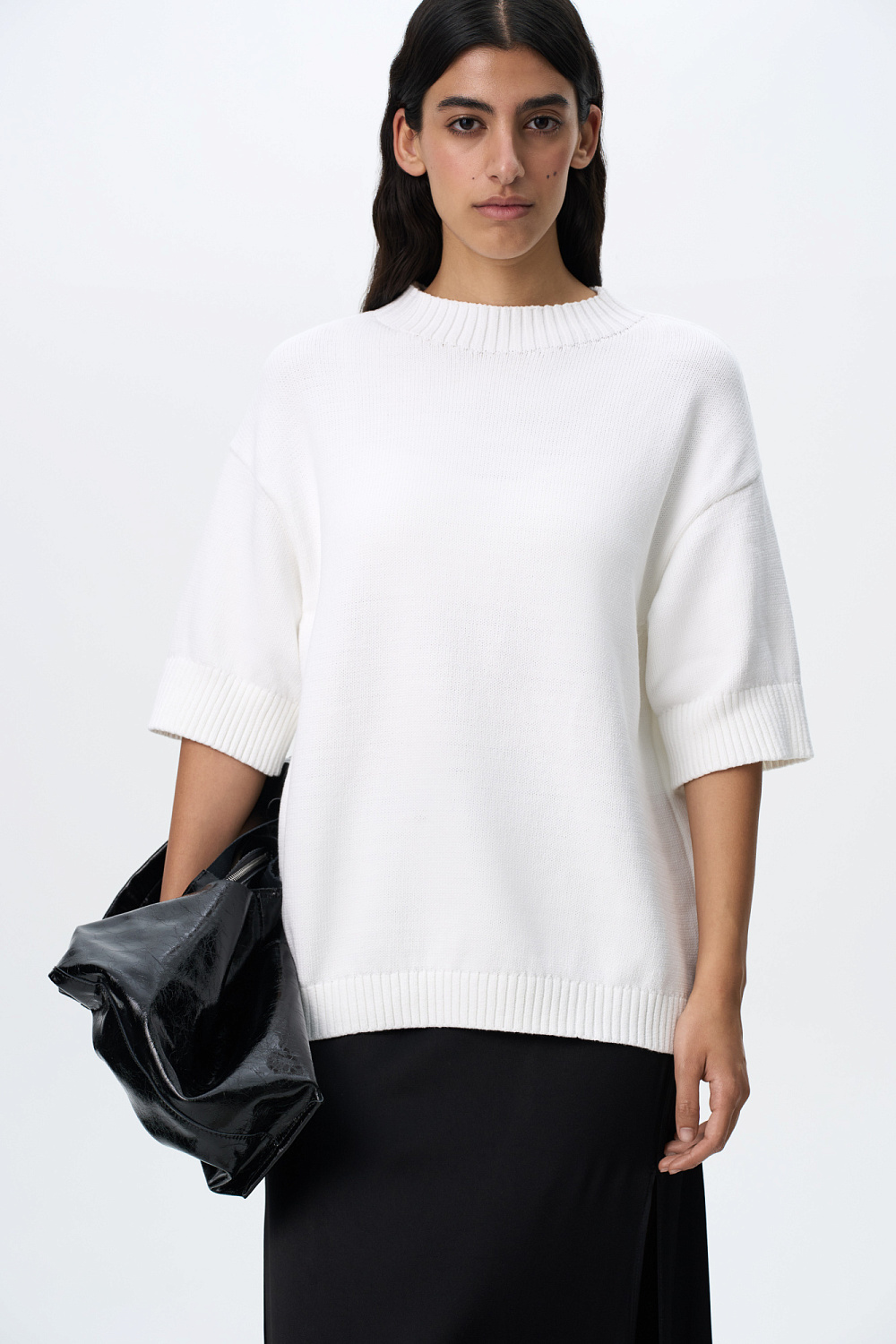 Loose knit cotton T-shirt with dropped shoulder line and ribbed edges