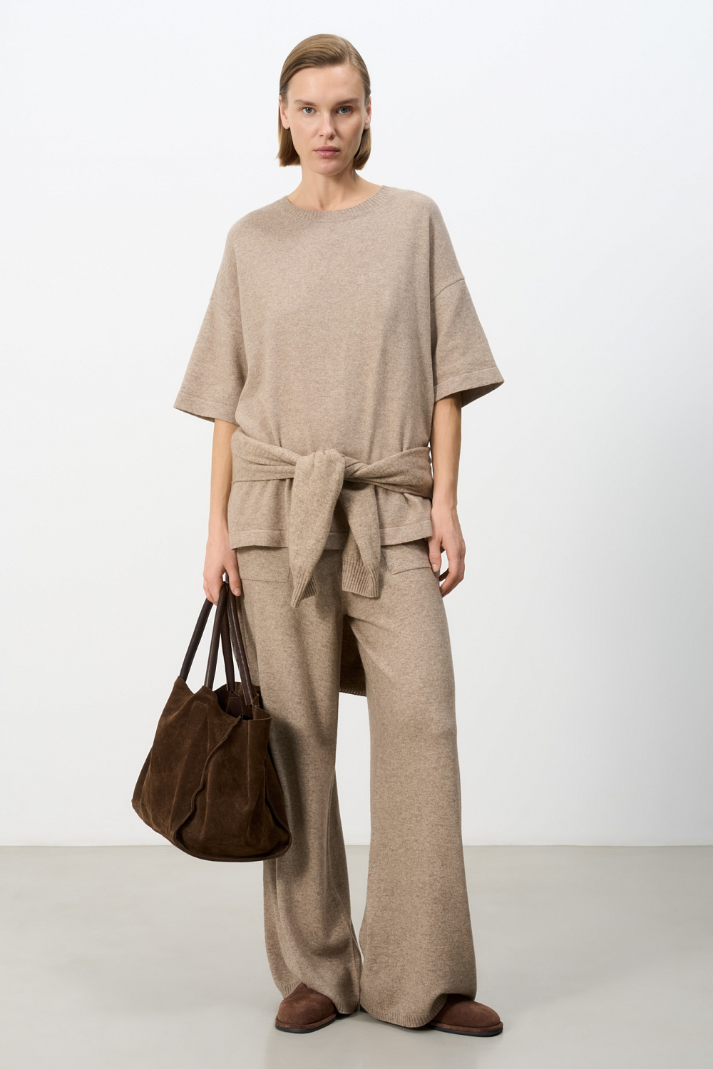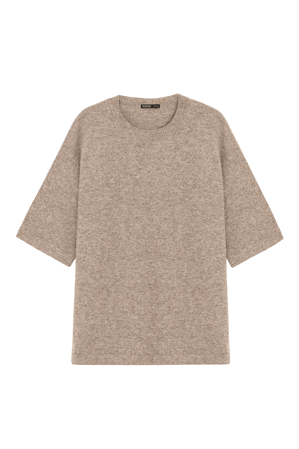 Knitted T-shirt made of wool and cashmere. Loose silhouette model with dropped shoulders and a round neckline.