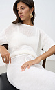 Knitted T-shirt made of 100% linen. Loose silhouette model with dropped shoulders, short sleeves and round neckline.