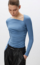 Longsleeve with an asymmetrical neckline. A fitted silhouette with draping on the side.