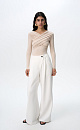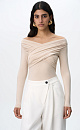 Fitted longline top with draped bodice made of soft and silky fabric with long sleeves.
