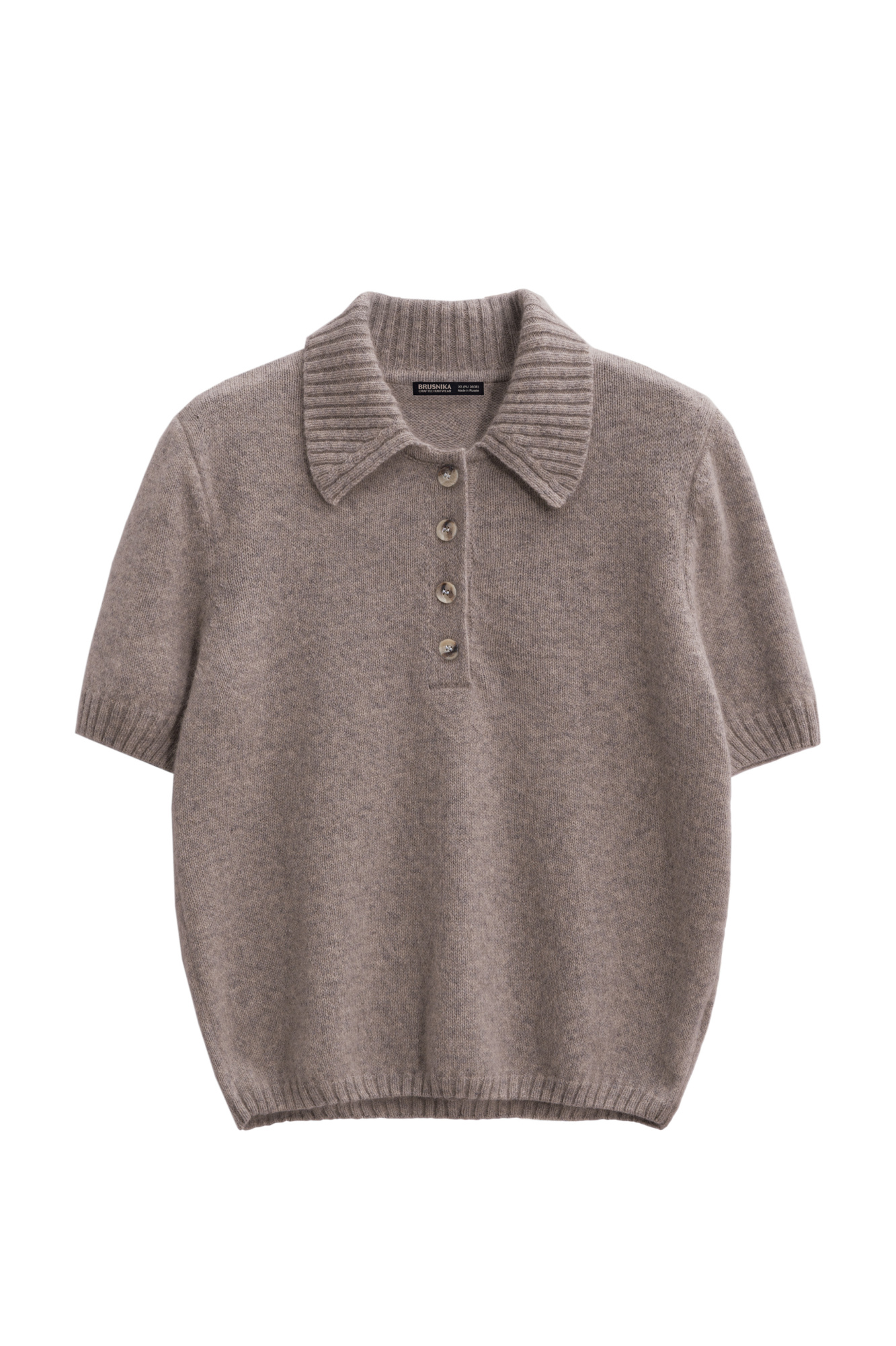 Knitted fox fur T-shirt. Model of a straight silhouette with a polo collar with buttons. The collar and edges of the product are ribbed.
