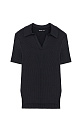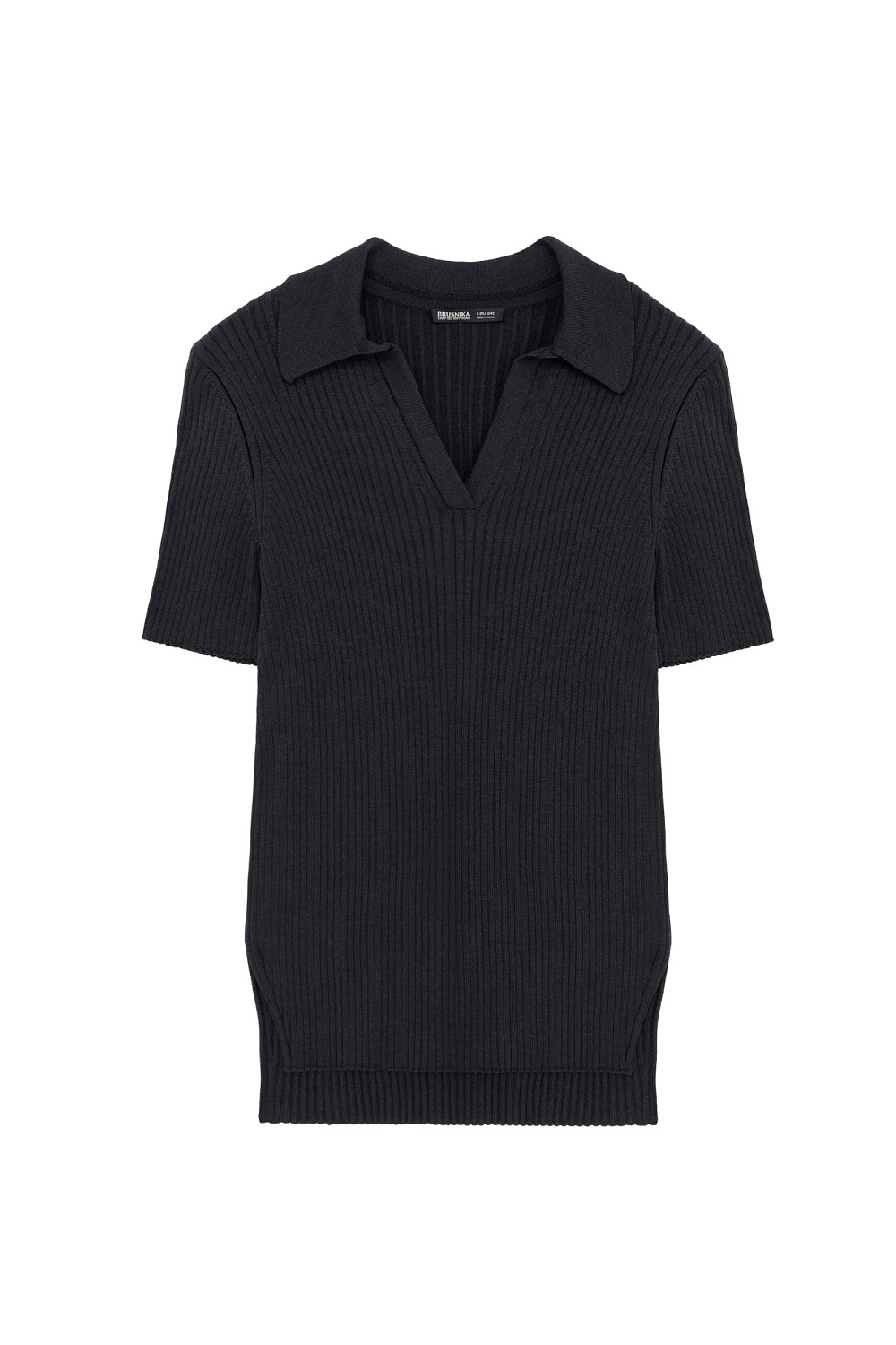 Longline ribbed T-shirt with a polo collar, dropped sleeves and side slits.