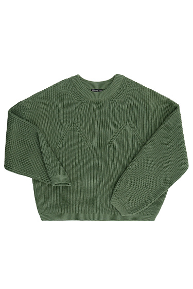 Knitted top with a polo collar. Fitted silhouette, button closure. Ribbed edges.