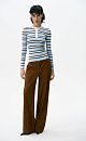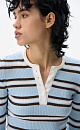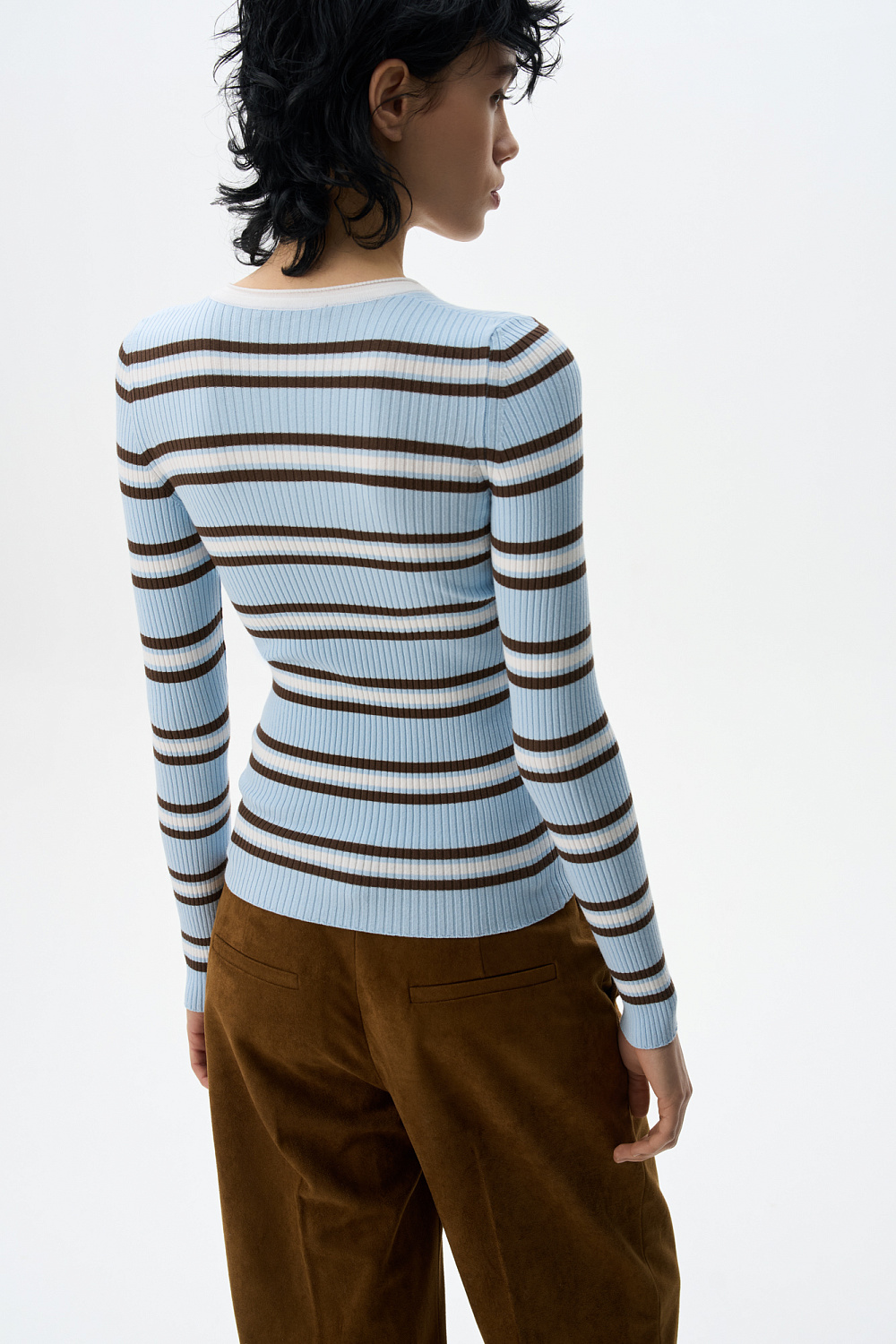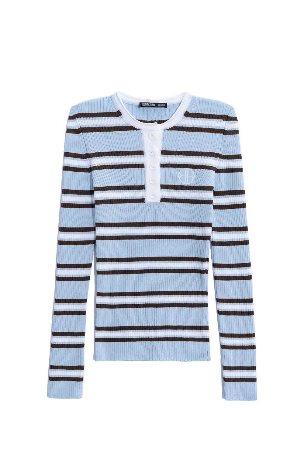Knitted long sleeve made of viscose. Model with a round neckline with a button placket and a branded label on the chest.