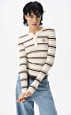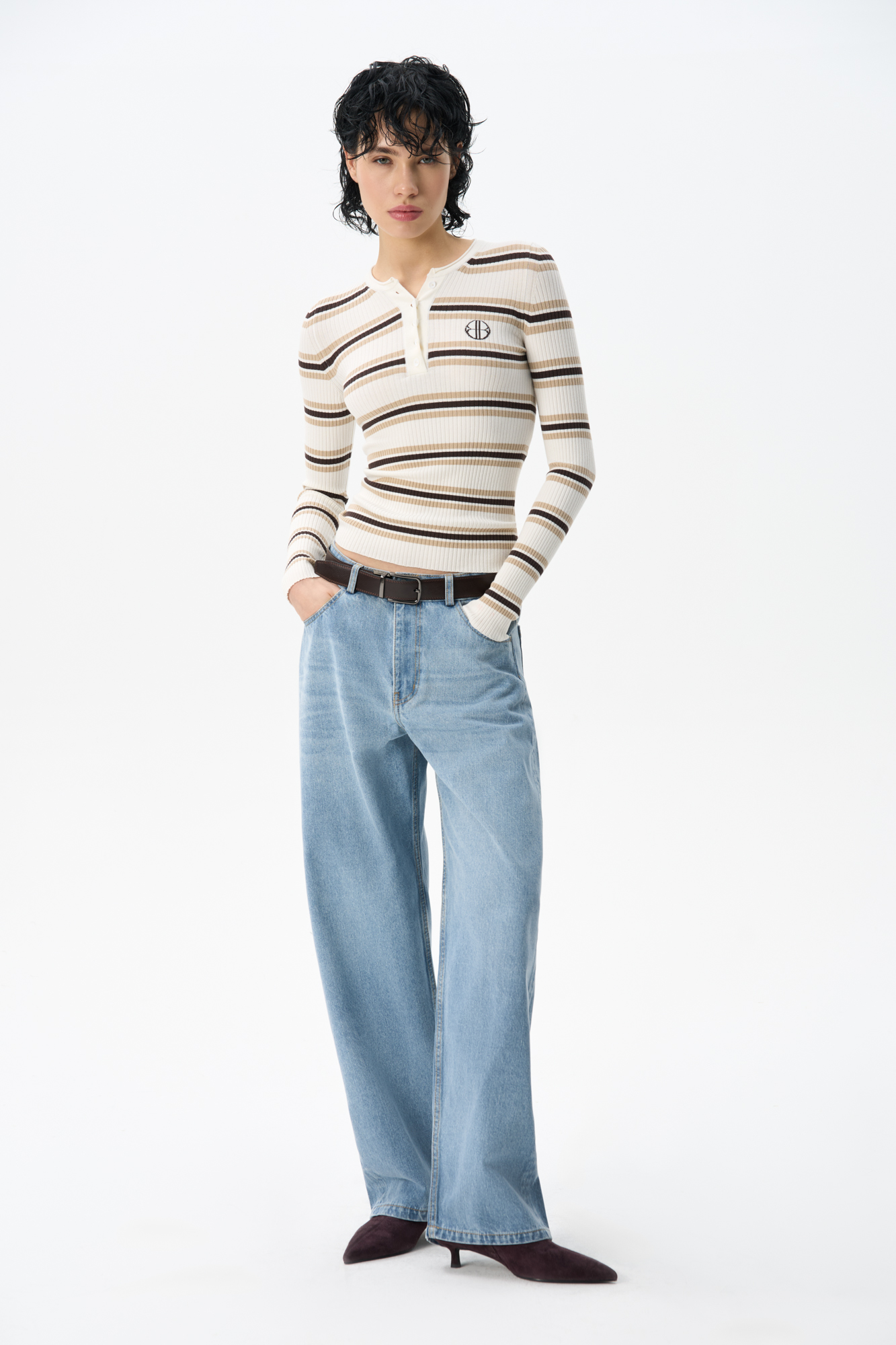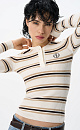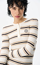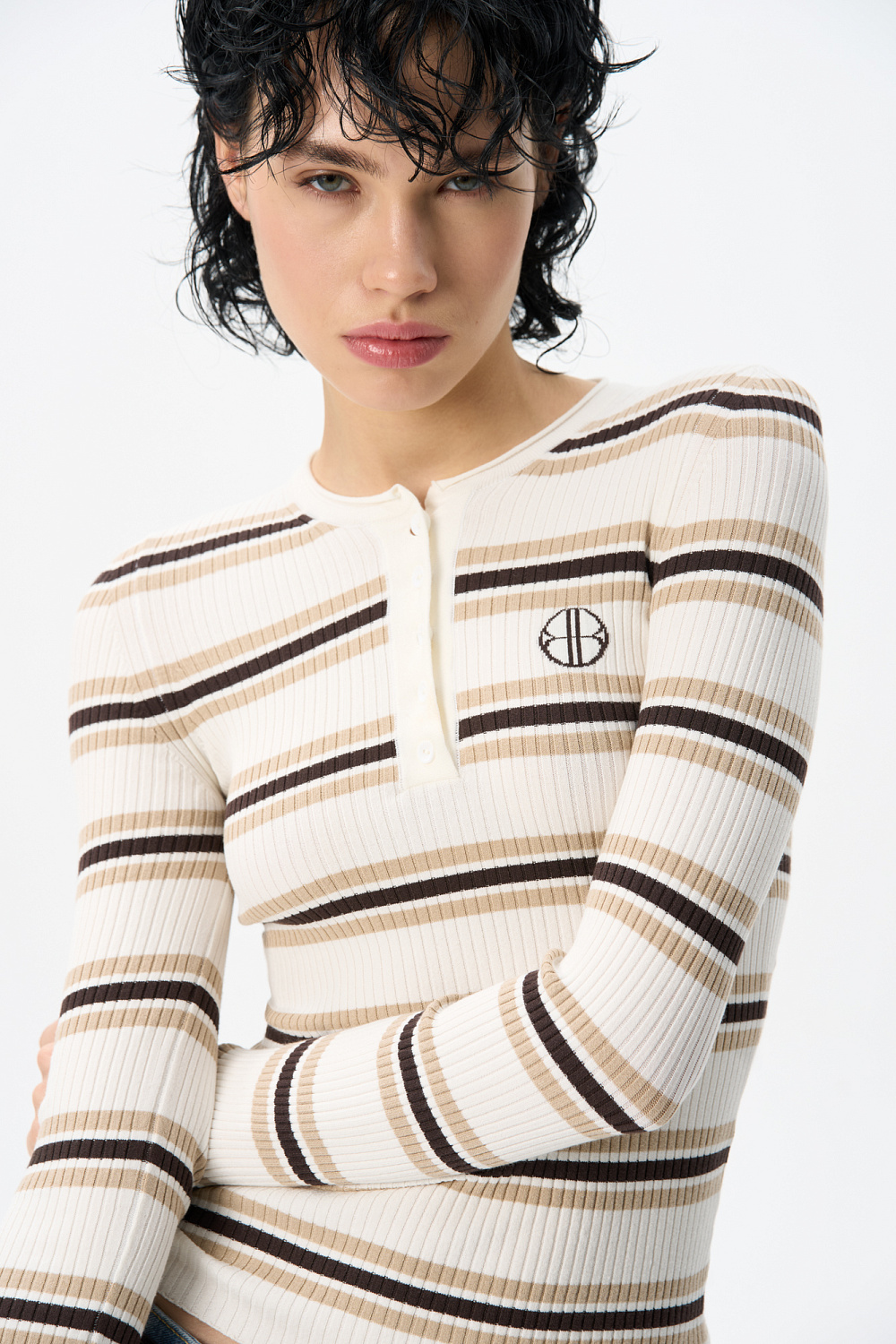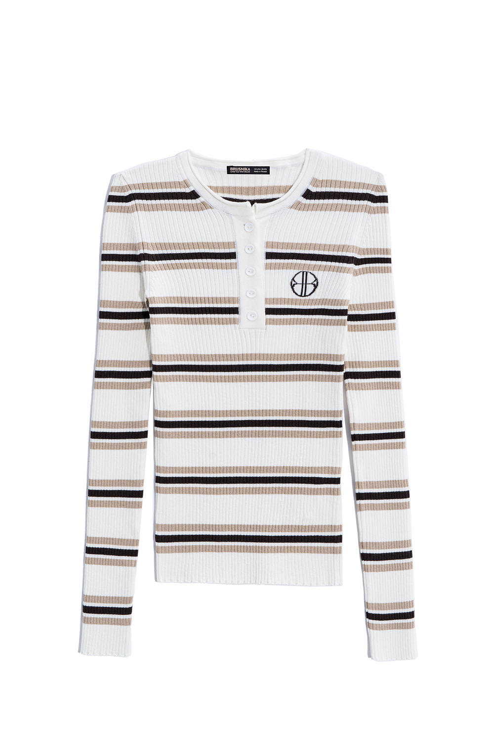 Knitted long sleeve made of viscose. Model with a round neckline with a button placket and a branded label on the chest.