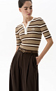 Viscose striped T-shirt. Short sleeve, round neckline and button placket. With a branded label on the chest.