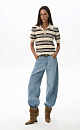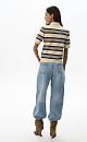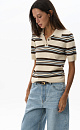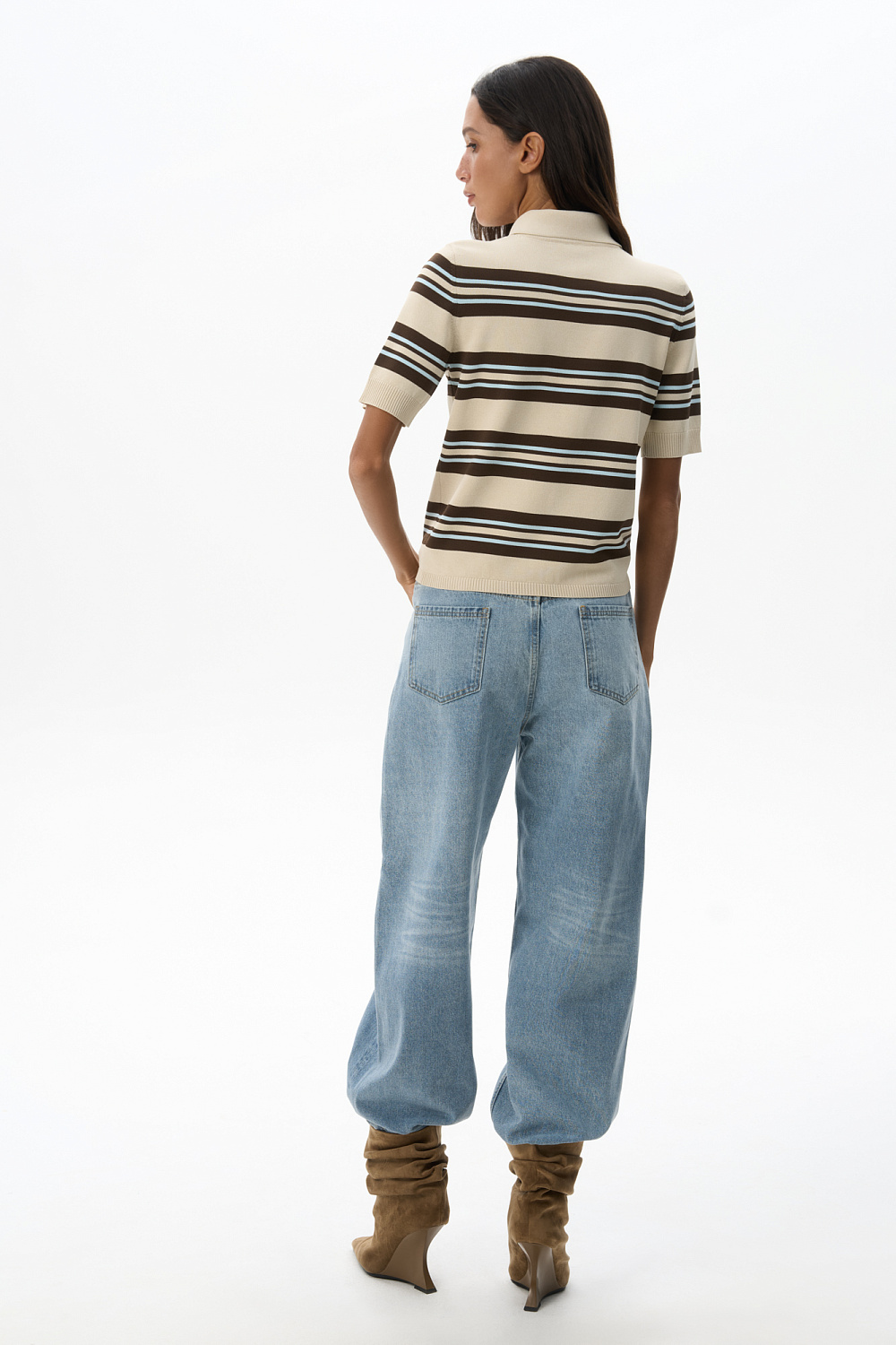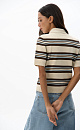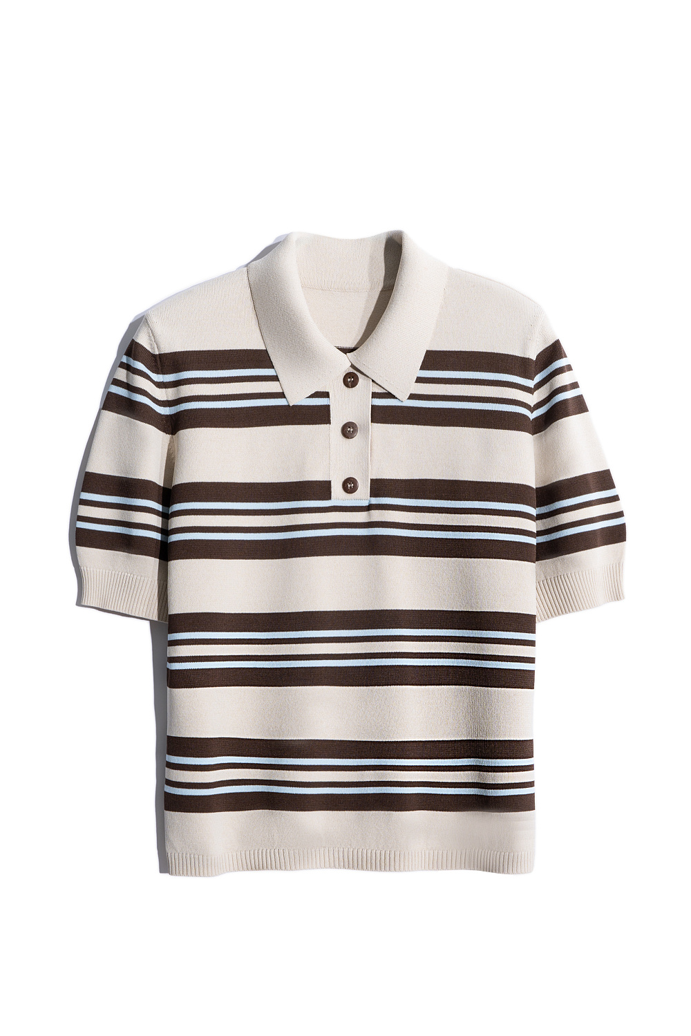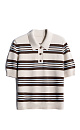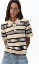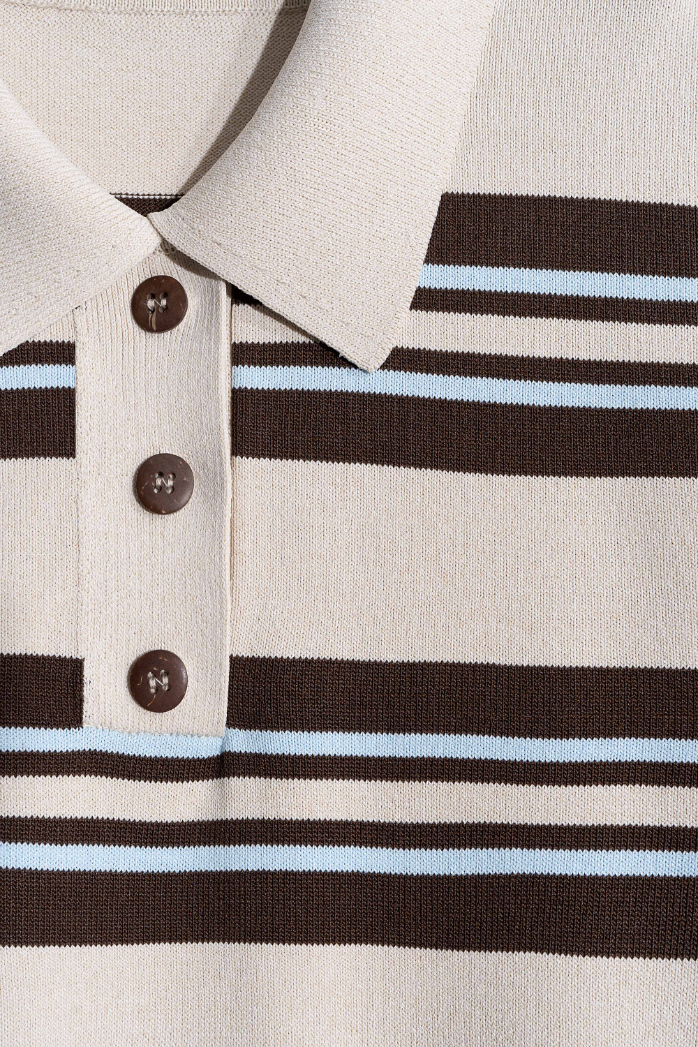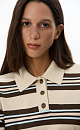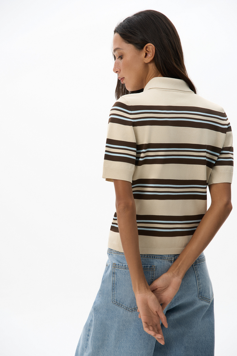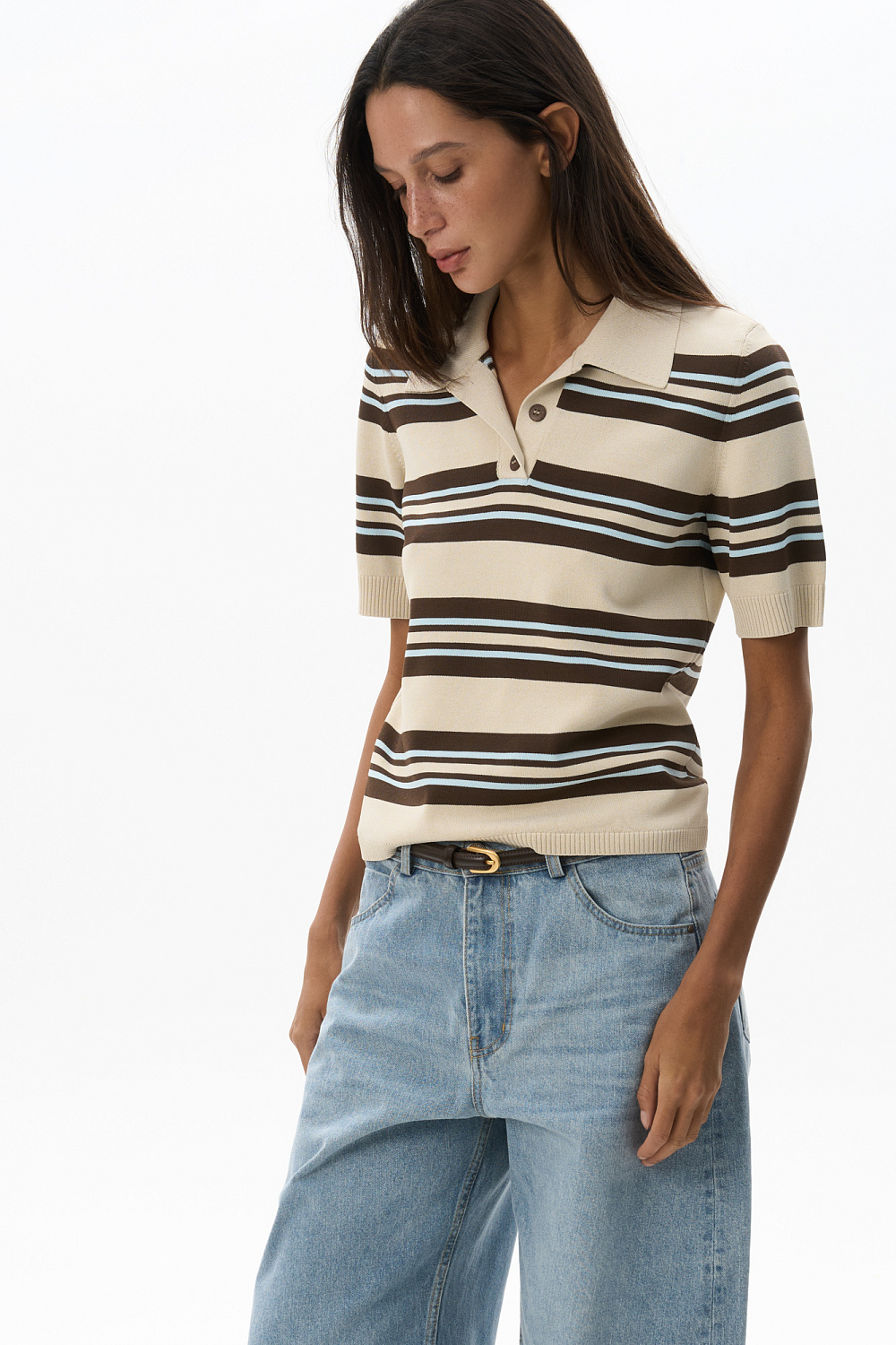 Knitted viscose striped polo shirt. Straight cut model with turn-down collar and buttons on the placket. The hem and sleeve cuffs are ribbed.