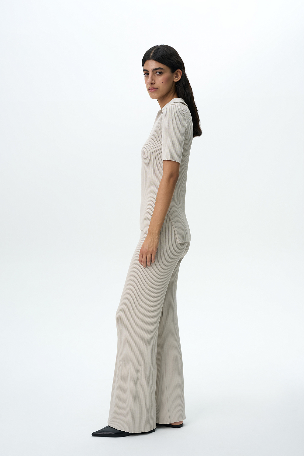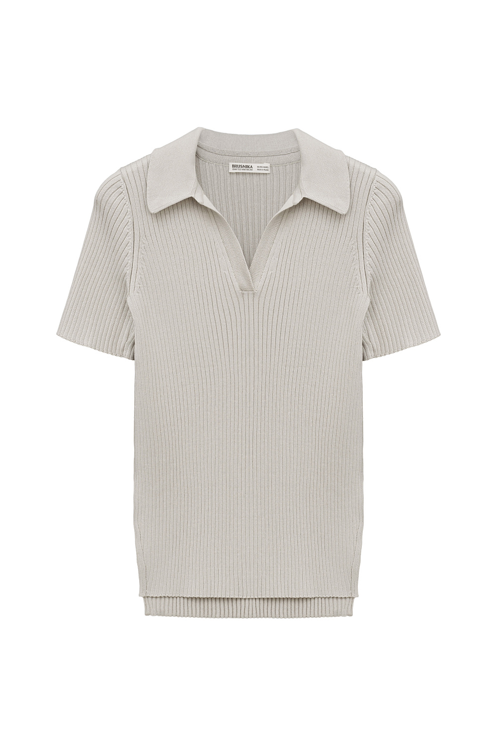 Longline ribbed T-shirt with a polo collar, dropped sleeves and side slits.