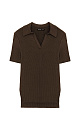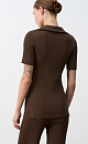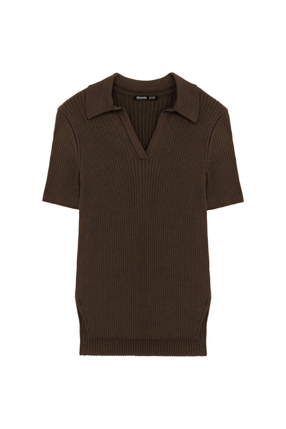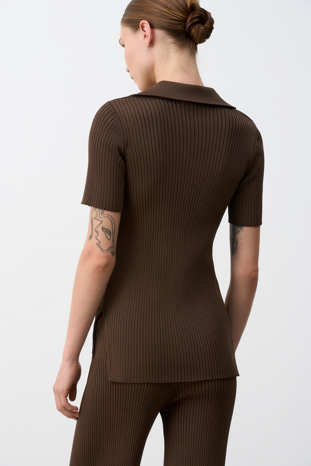 Longline ribbed T-shirt with a polo collar, dropped sleeves and side slits.