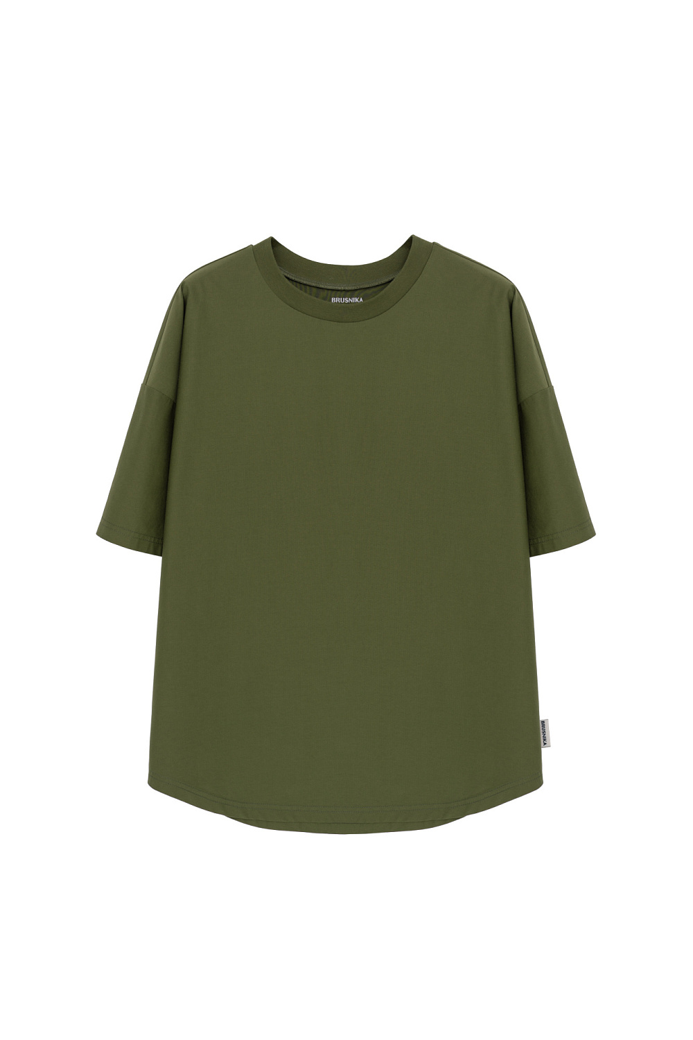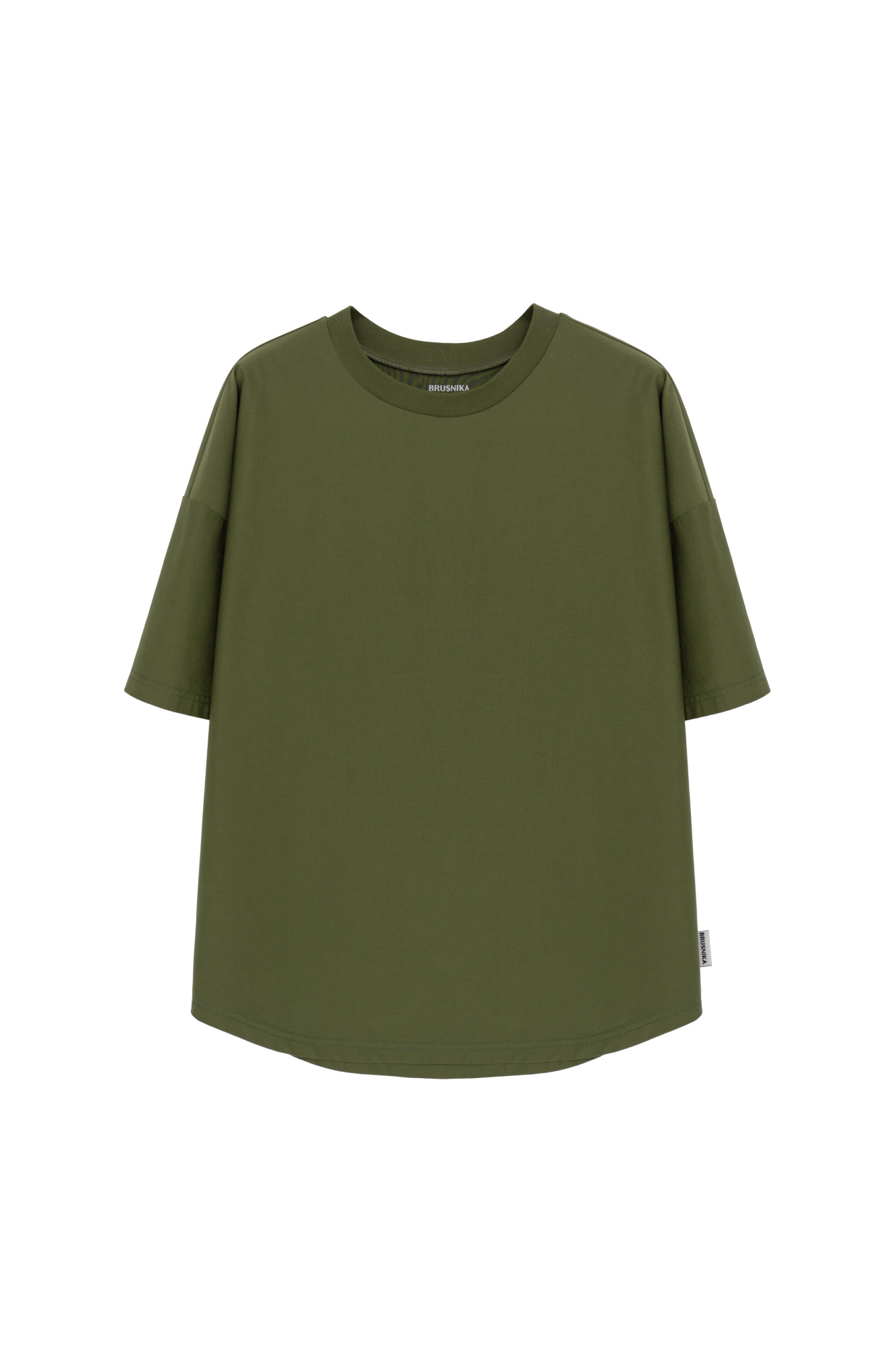 Oversized T-shirt with dropped shoulders and a rounded hem.