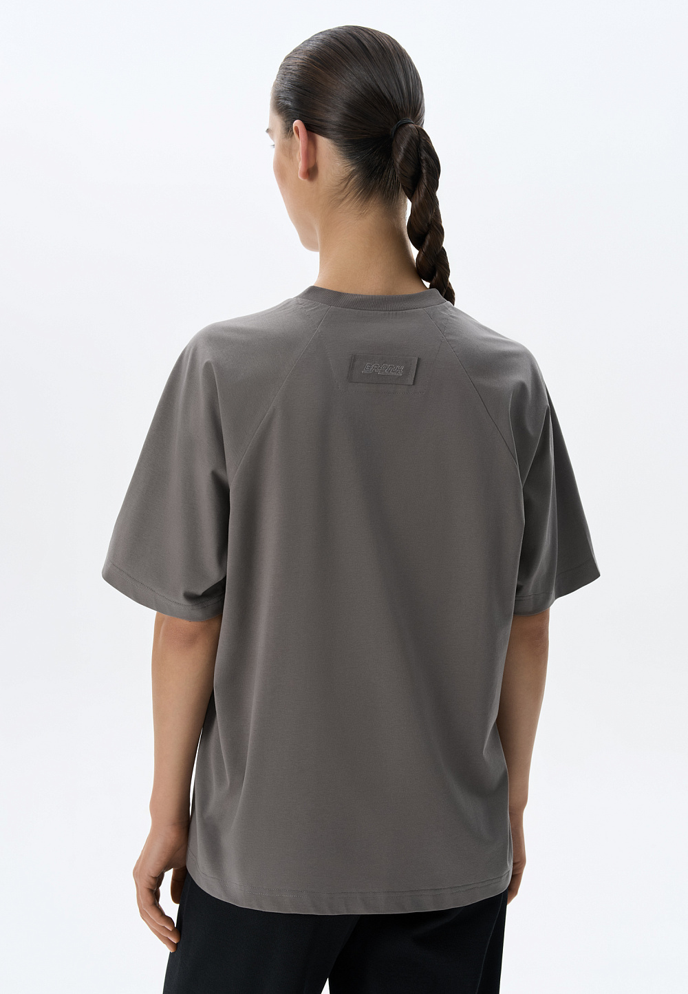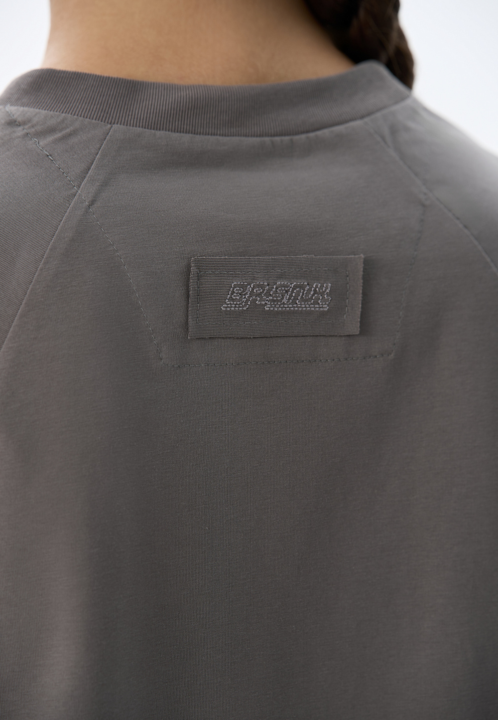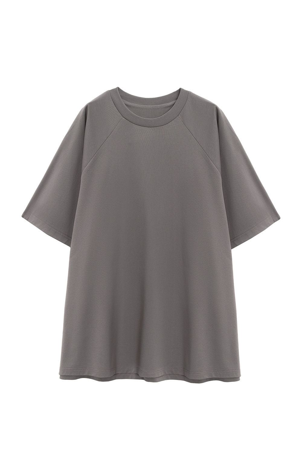 T-shirt made of cotton with the addition of soron. Straight cut model with round neckline and raglan sleeves.