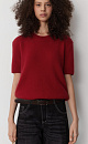 Knitted fox fur T-shirt. Model of a loose silhouette, with short sleeves and a round neckline. The edges of the product are ribbed. You can complement the look with a skirt.
