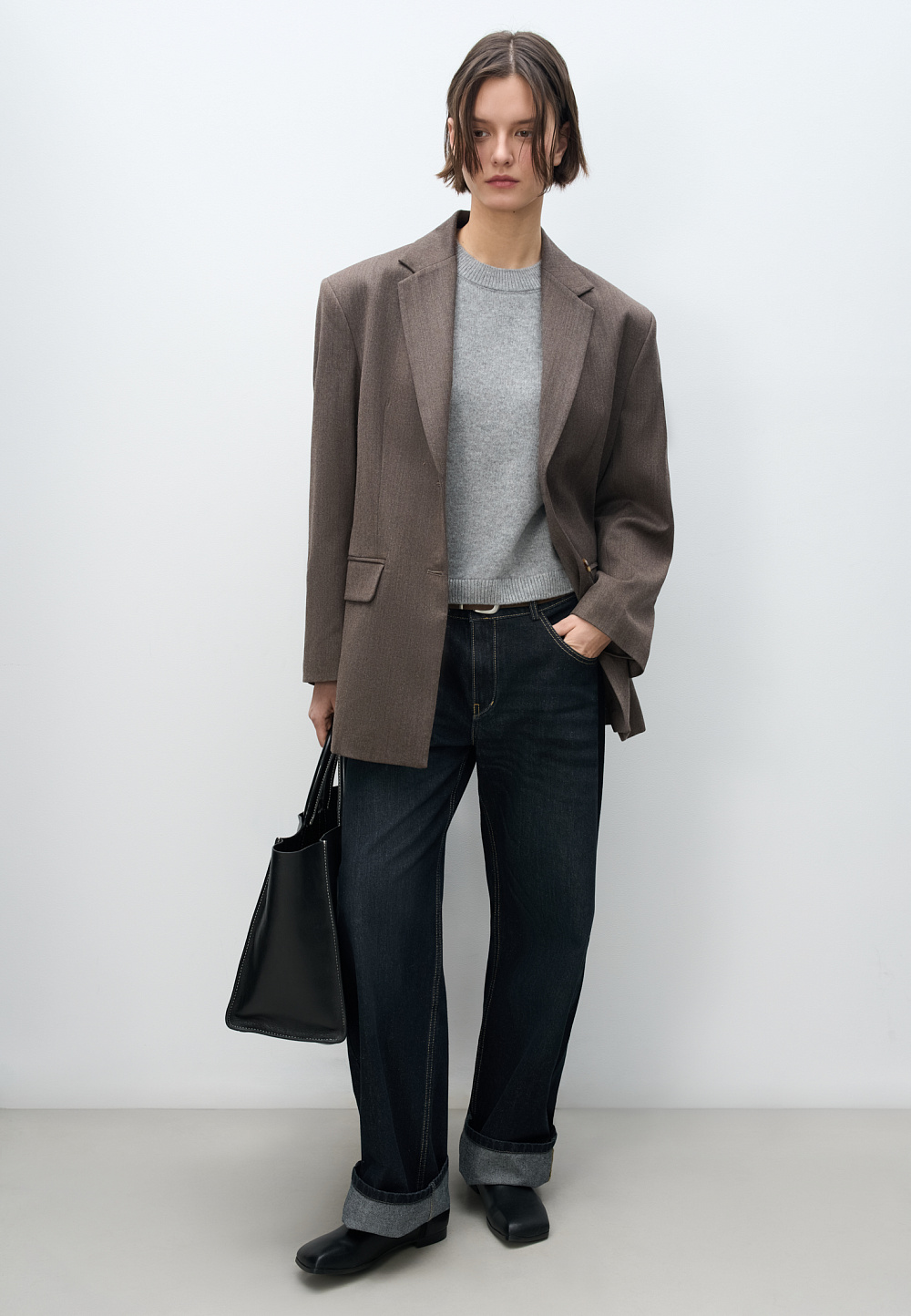 Knitted T-shirt made of 100% cashmere. Model of a loose silhouette, with short sleeves and a round neckline. The edges of the product are ribbed.