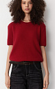 Knitted fox fur T-shirt. Model of a loose silhouette, with short sleeves and a round neckline. The edges of the product are ribbed. You can complement the look with a skirt.