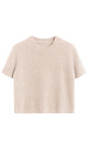Knitted fox fur T-shirt. Model of a loose silhouette, with short sleeves and a round neckline. The edges of the product are ribbed. You can complement the look with a skirt.