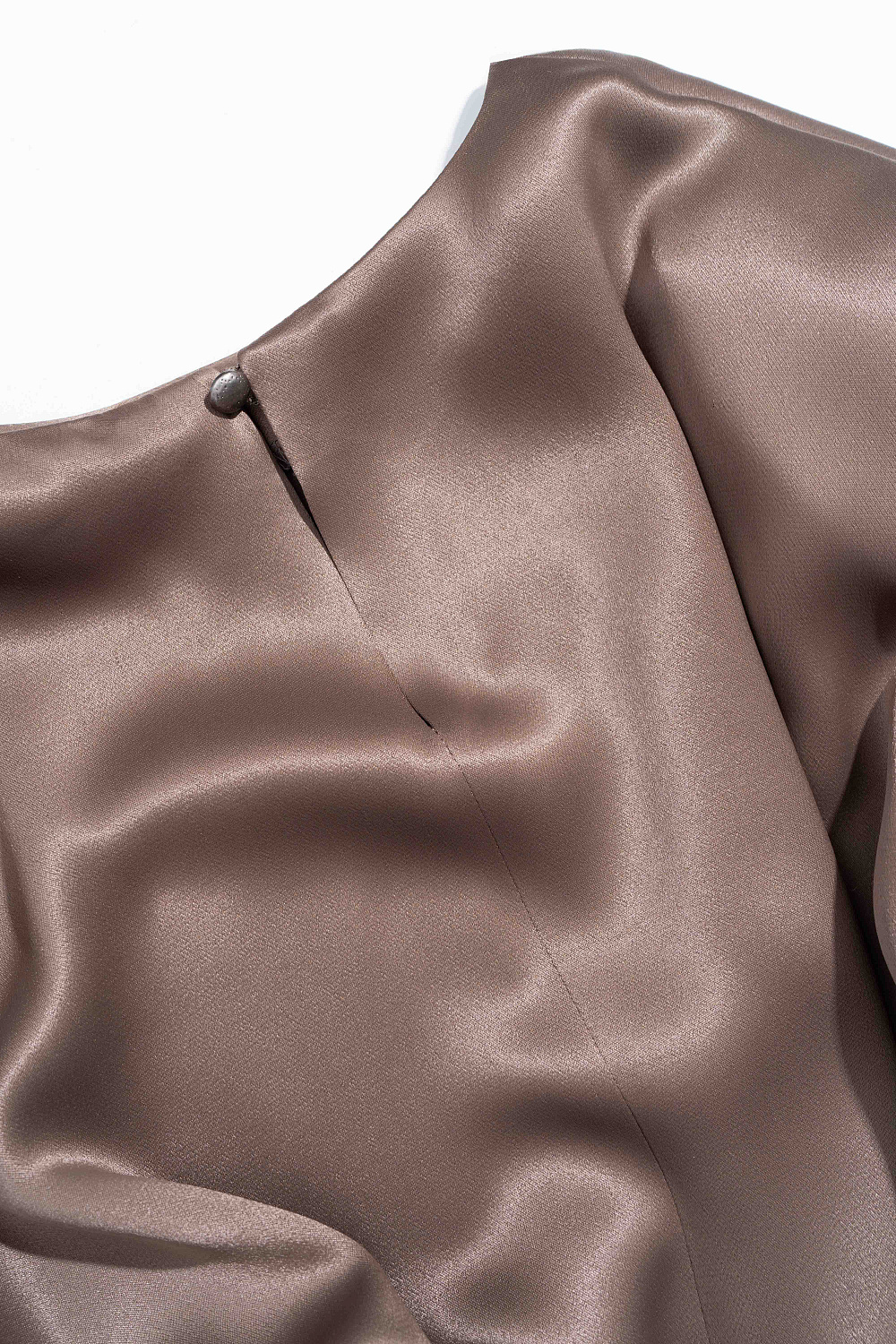 Long T-shirt made of 100% satin viscose. Loose silhouette model with shoulder pads and wide sleeves.