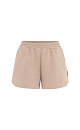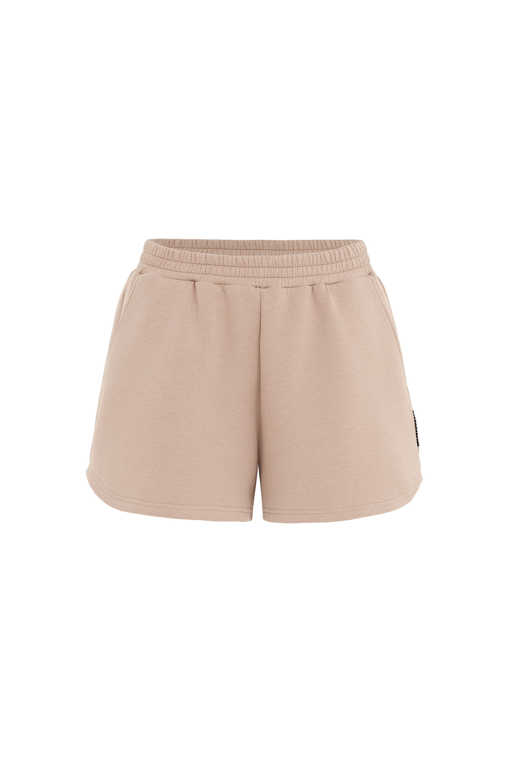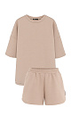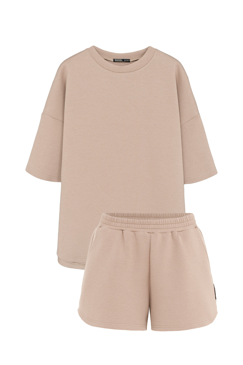 Cotton set of a loose-fit T-shirt with dropped shoulders and shorts with an elastic waistband and a logo on the side.