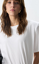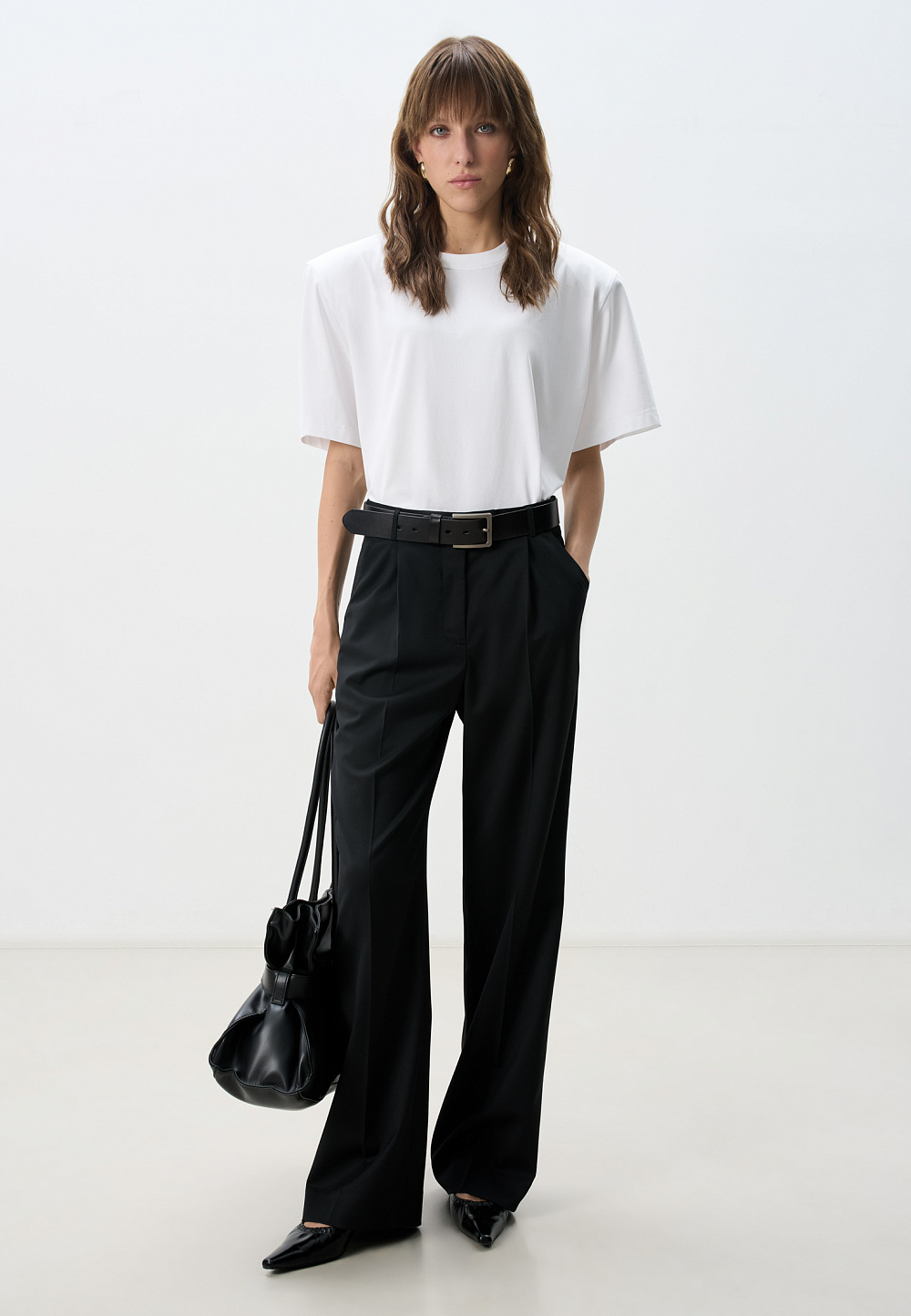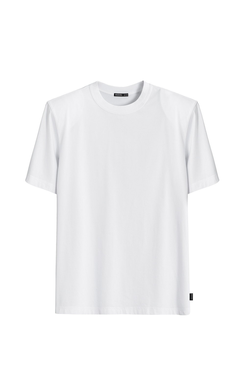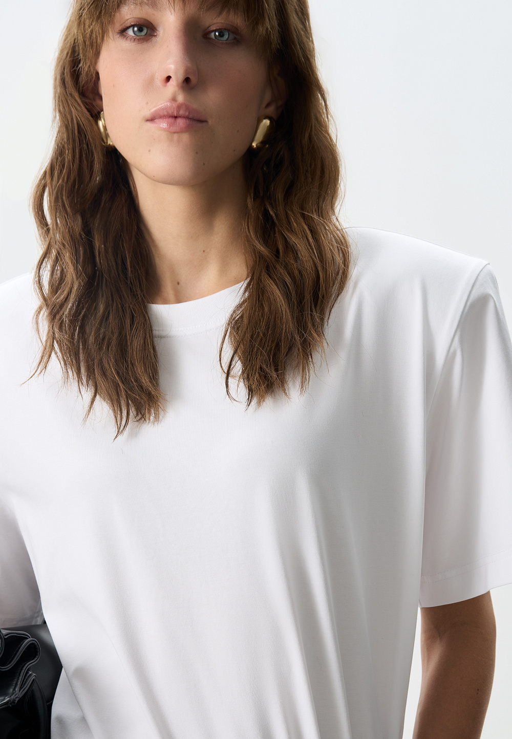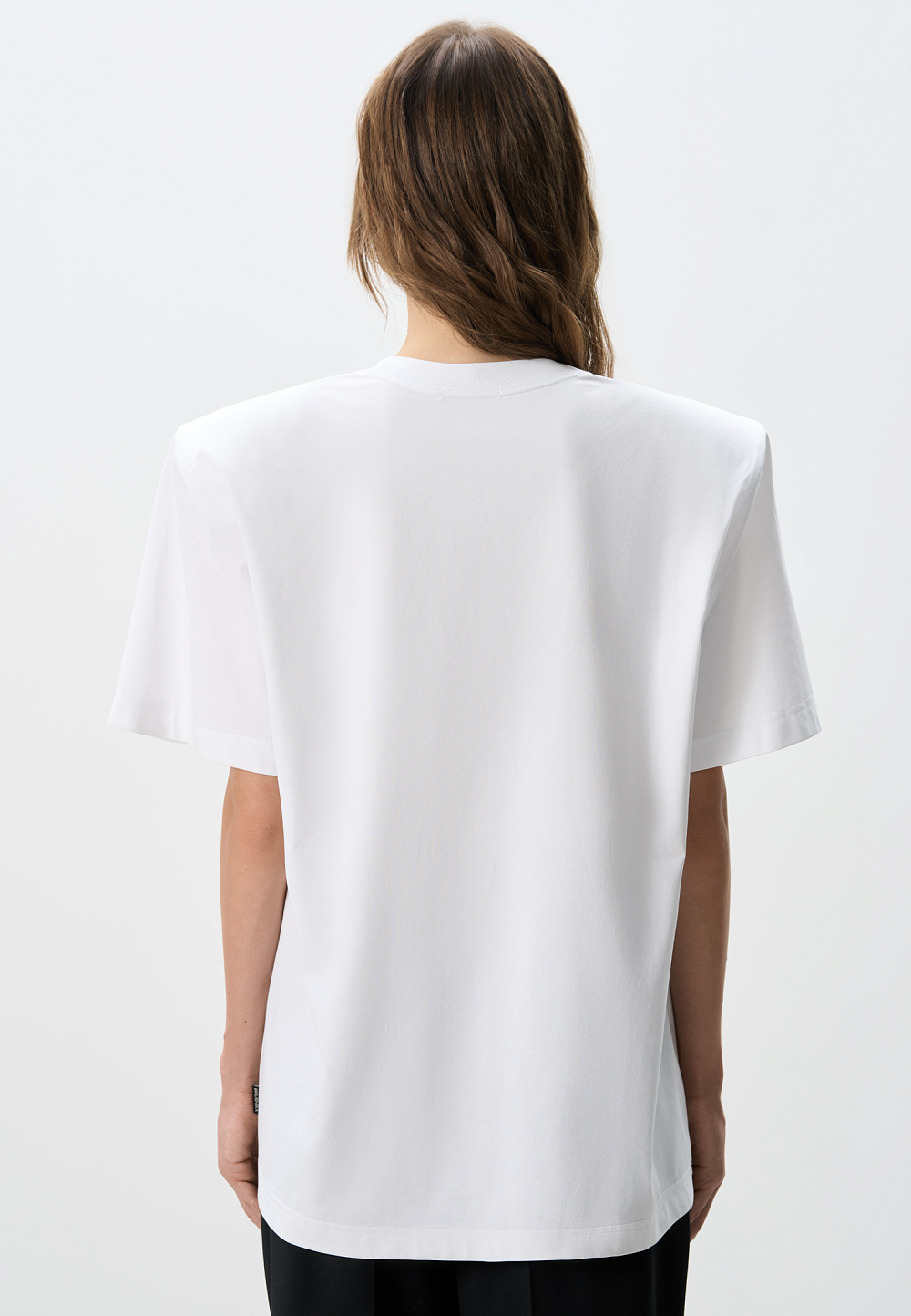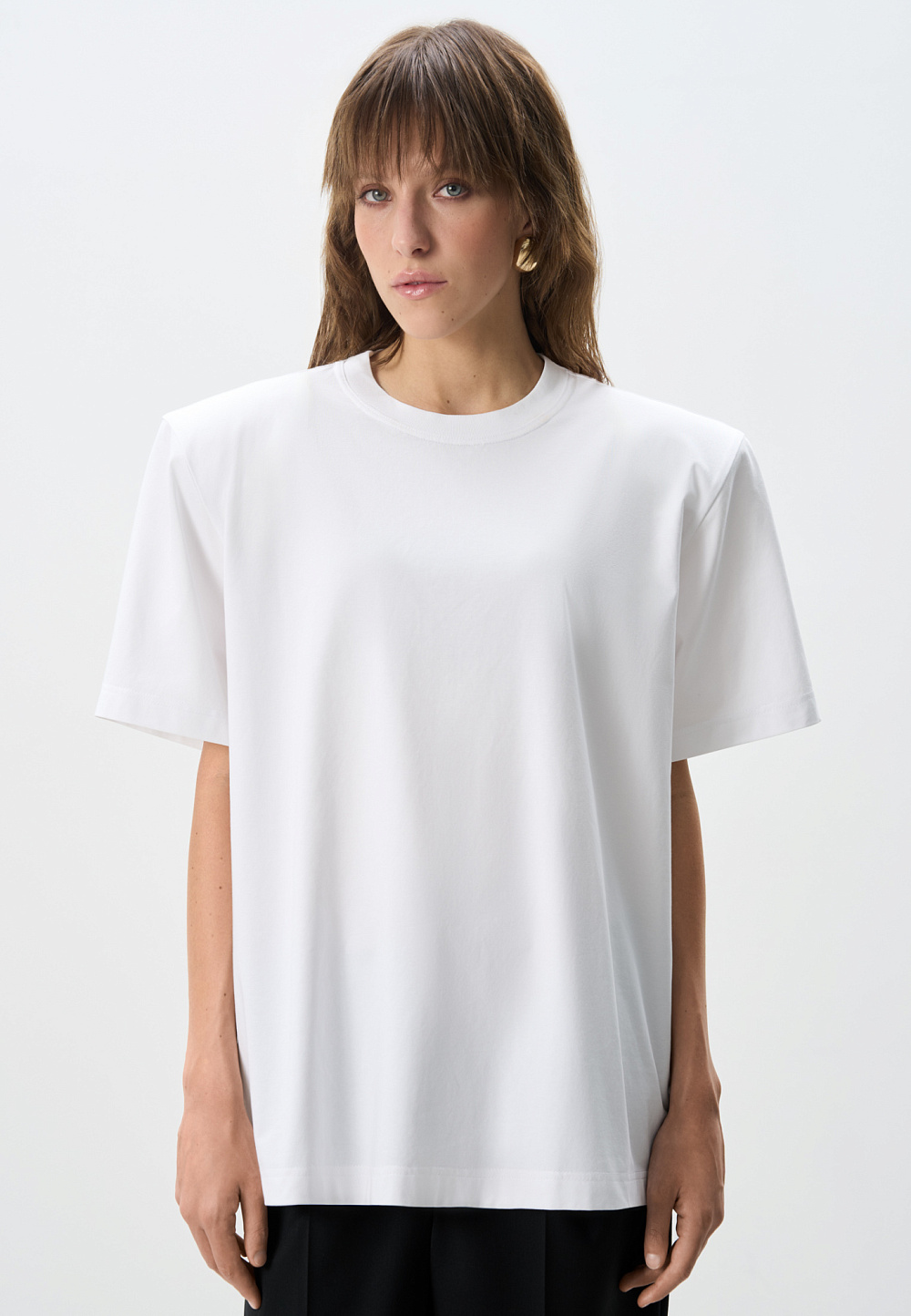 100% cotton T-shirt. Model with shoulder pads, short sleeves and round neckline.